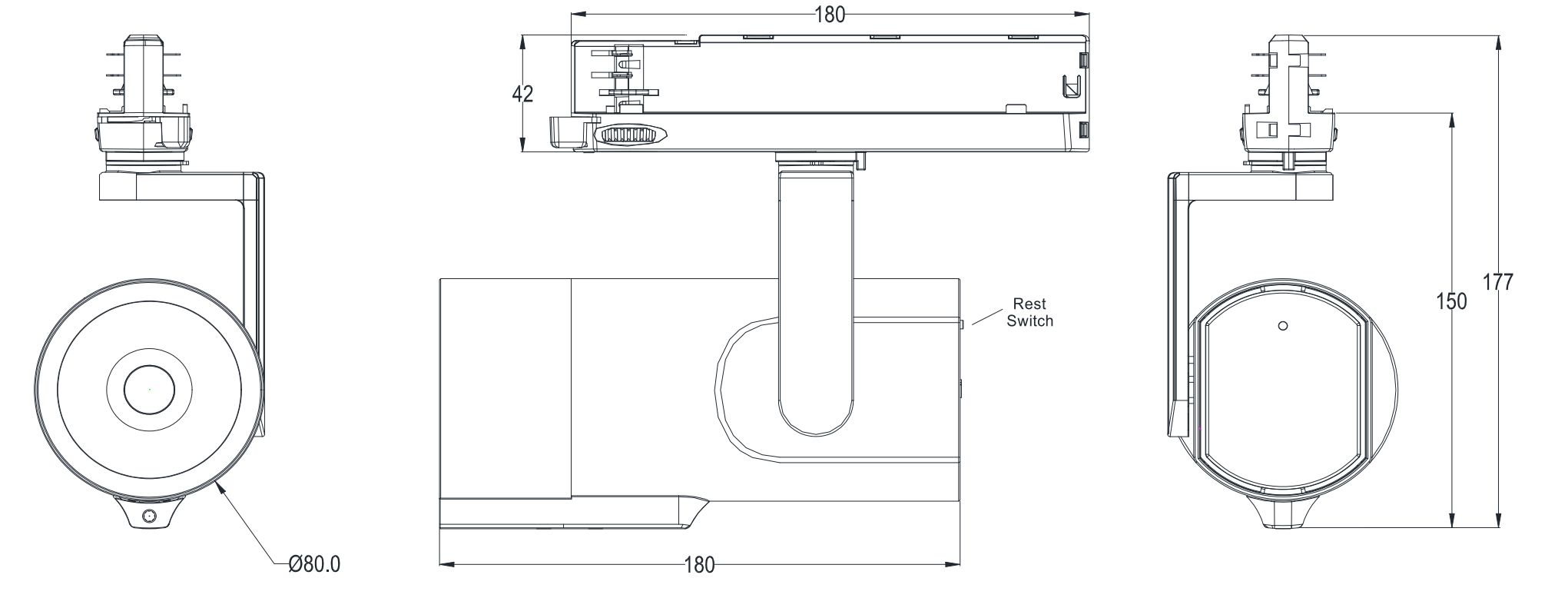 Skinnemontert Ø70-150