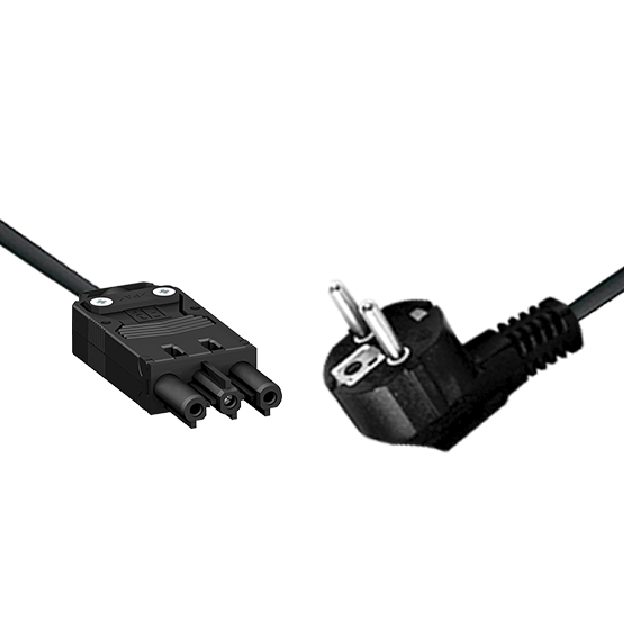 Wieland 18i3 hun–Schuko er en prefabrikkert pluggbar kabel for rask og sikker tilkobling. Kabelen er 2 m, leveres i sort utførelse og er bygget som en 3-polet pluggforbindelse (L, N, PE) med 1,5 mm² ledertverrsnitt.