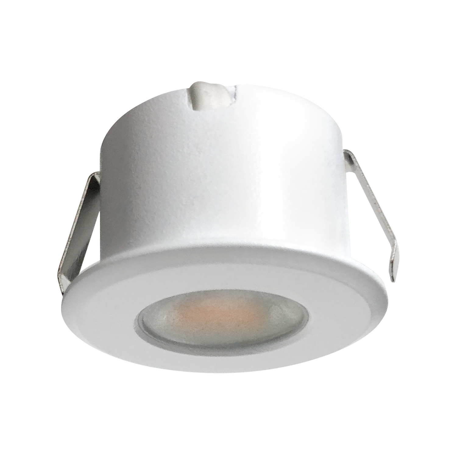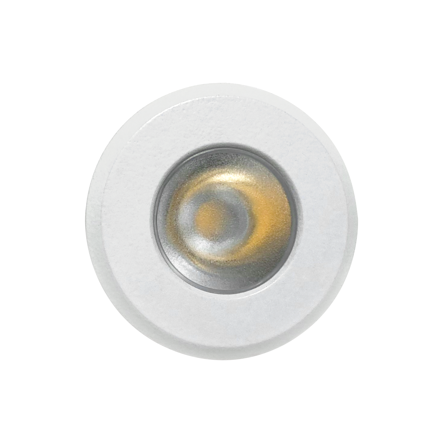 Mini downlight for aksentbelysning i vinduer, hyller og veggnisjer eller lignende. 130lm med 45° spredning. Leveres med 2m kabel og minikontakt for rask installasjon. Forgrener og forlengelseskabel finnes som tilbehør. Kappe for utenpåliggende montering og 350mA driver kjøpes separat. Beregn 2,9-3,3V pr. downlight. Driver må beregnes i forhold til spenning (seriekobling) og effekt. Både fasekutt og DALI-driver kan benyttes som av/på-driver (uten dimming).