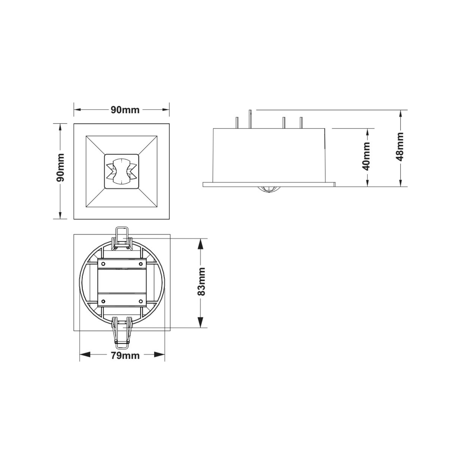 Innfelt nødlys armatur på 1time med autotest og LiFePO4 batteri. Batteri for nødlys: 1 års garanti