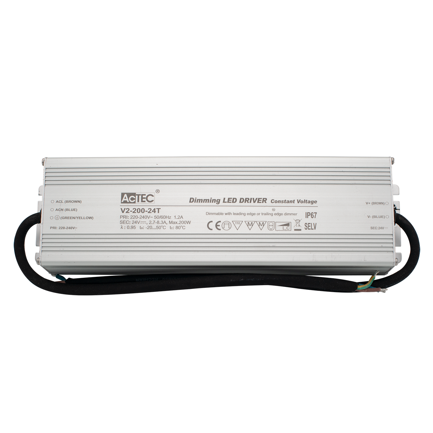 Kraftig 200W LED-driver for LED-striper som krever høy effekt. Leveres med fasekutt og er IP67 sertifisert.