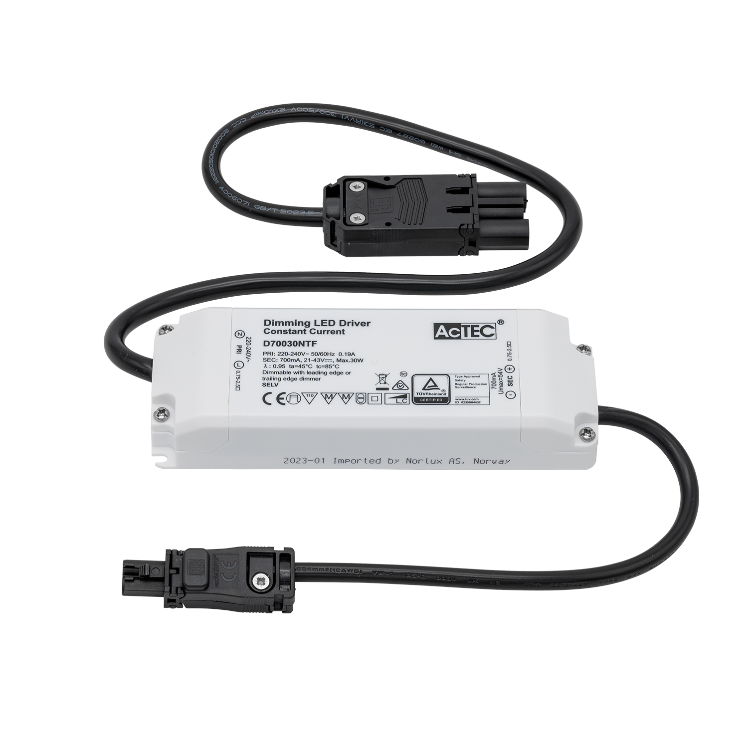 Driver 700mA cc 30W 21-43V Phasecut AcTec 18i3 Male/EPN0034