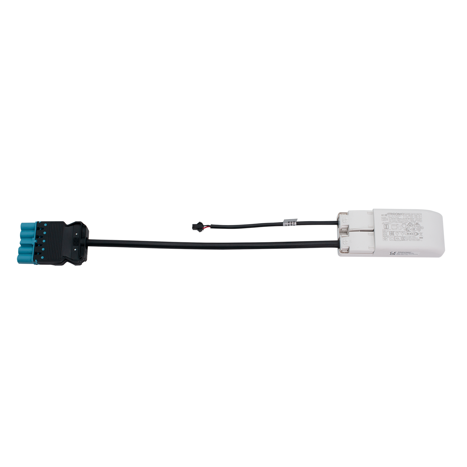 Tridonic DALI driver innstilt på 500mA, max 18W. Spenningsvindu 7-36V. Primær side 0,3m kabel med 18i5 DALI (male). Sekundær side SM-plugg. Kan også benyttes som switch-dim/ push-dim.