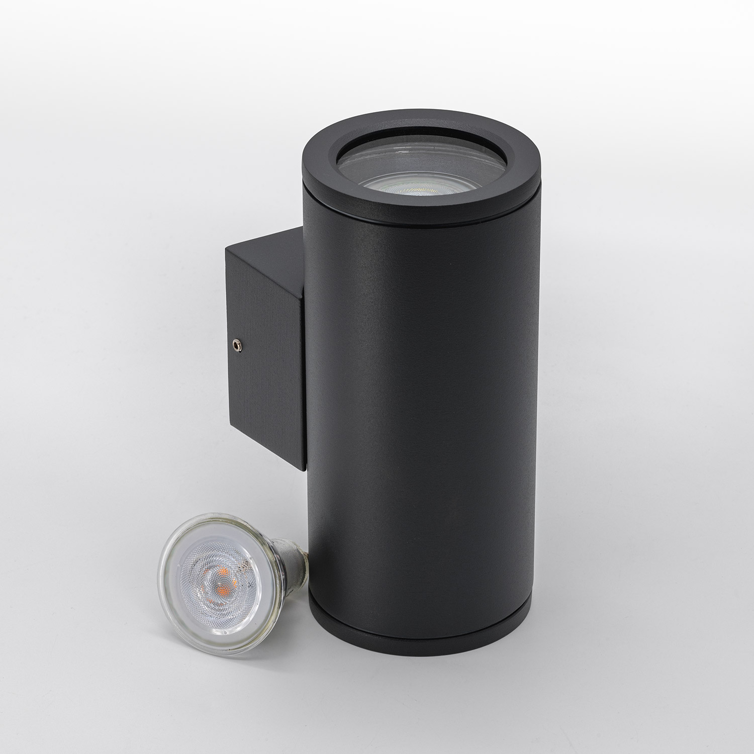 Gemma GU10 Up&Down utelampe i mørk grå for utendørs bruk skaper stemningsfull belysning med opp- og nedlys. Med utskiftbare GU10 lyskilder (selges separat) og klar diffuser gir den en behagelig atmosfære. Med IP54 beskyttelse og 2700K fargetemperatur tåler den ulike værforhold og skaper en harmonisk blanding av stil og lys.