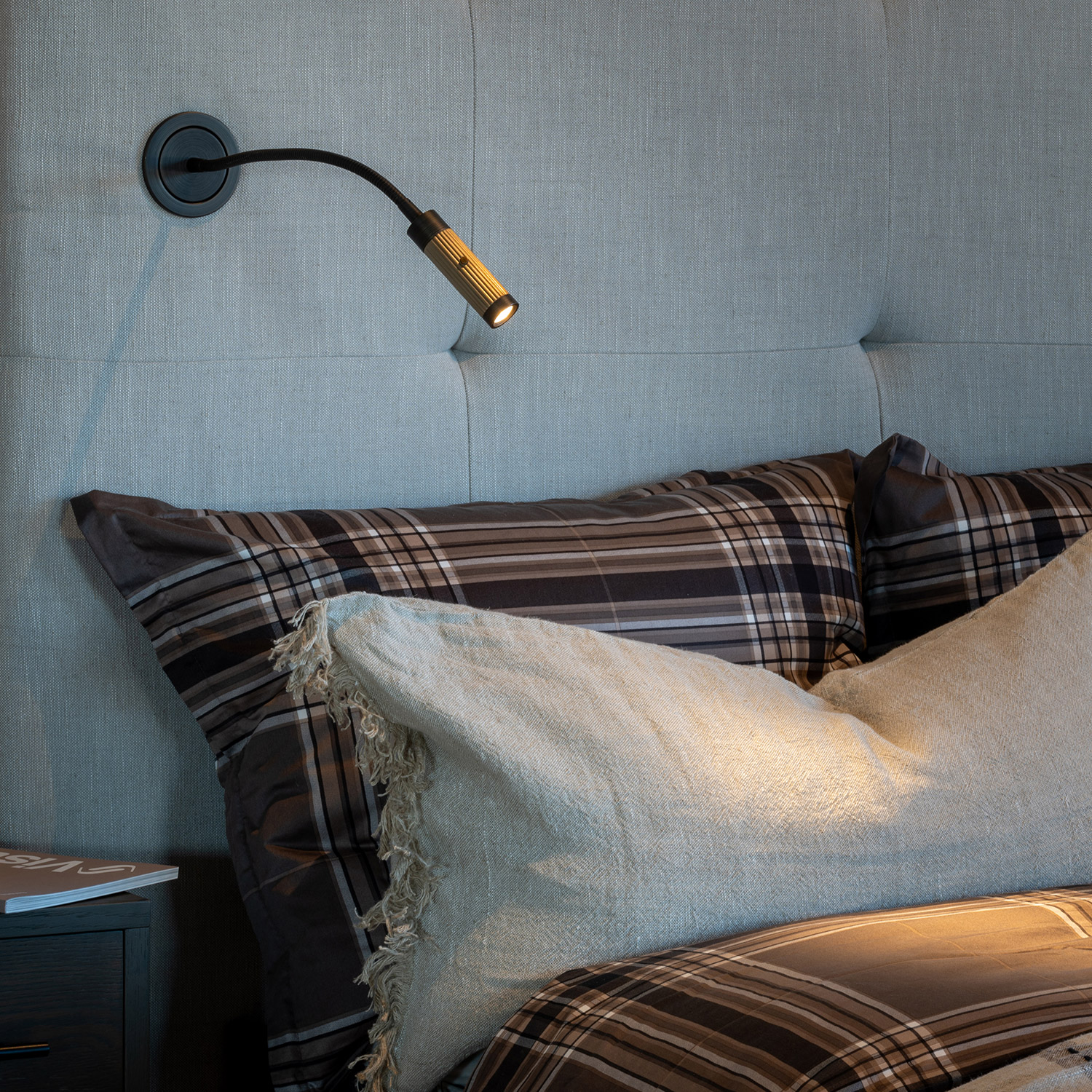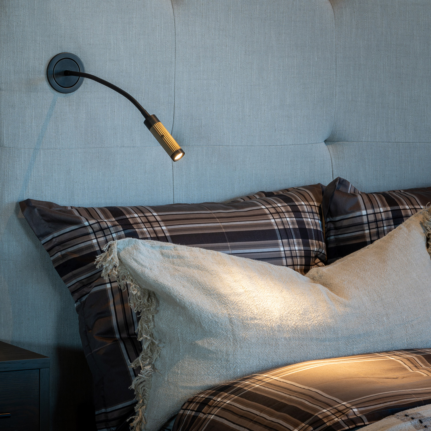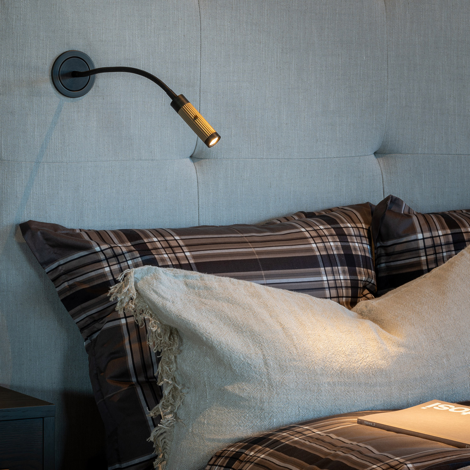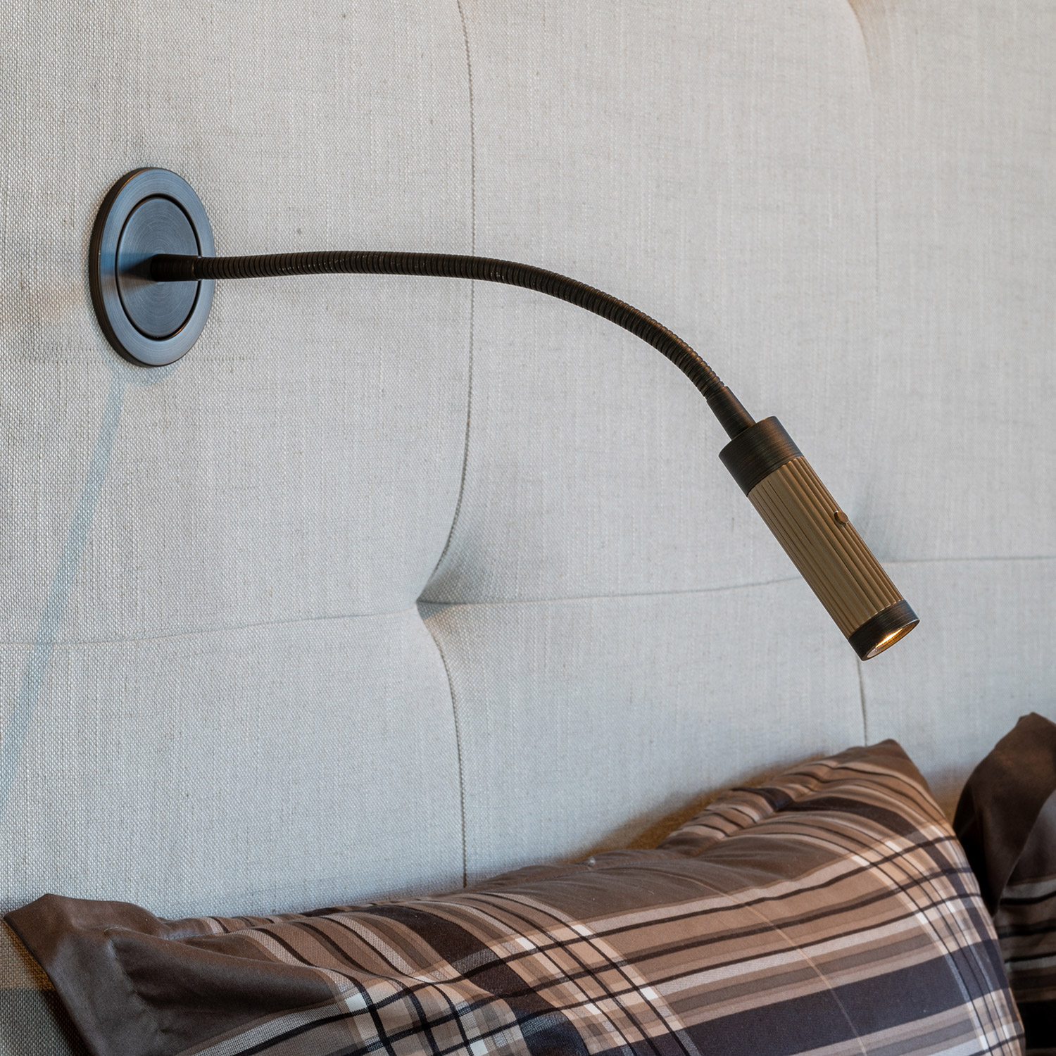 Giulio er en innfelt vegglampe / soveromslampe med fleksarm og av / på knapp.