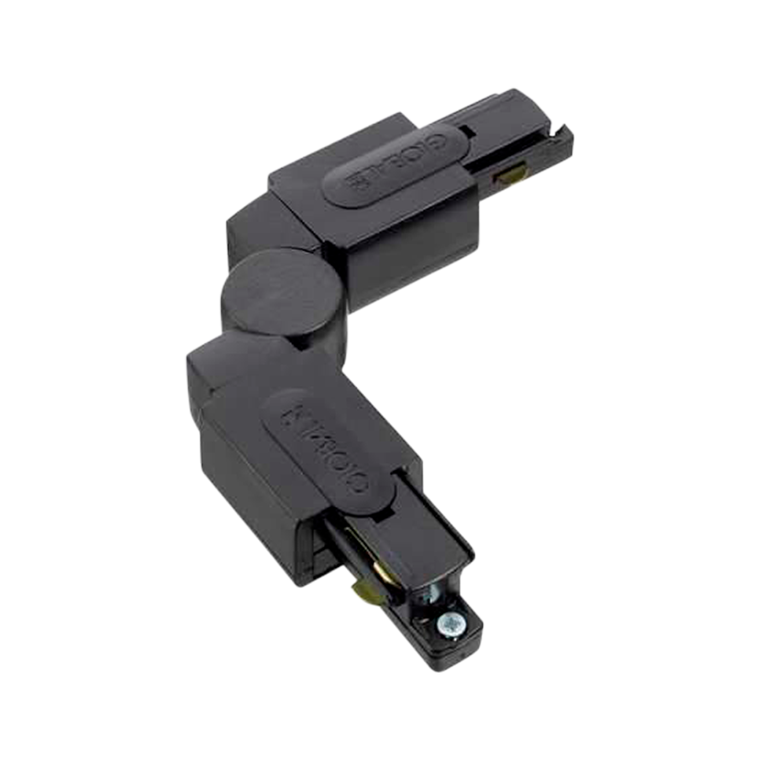 Global Base 1-fase justerbar vinkelskjøt (sort). Benyttes for å koble to skinner sammen i en vinkel på 0 til 180 grader.
