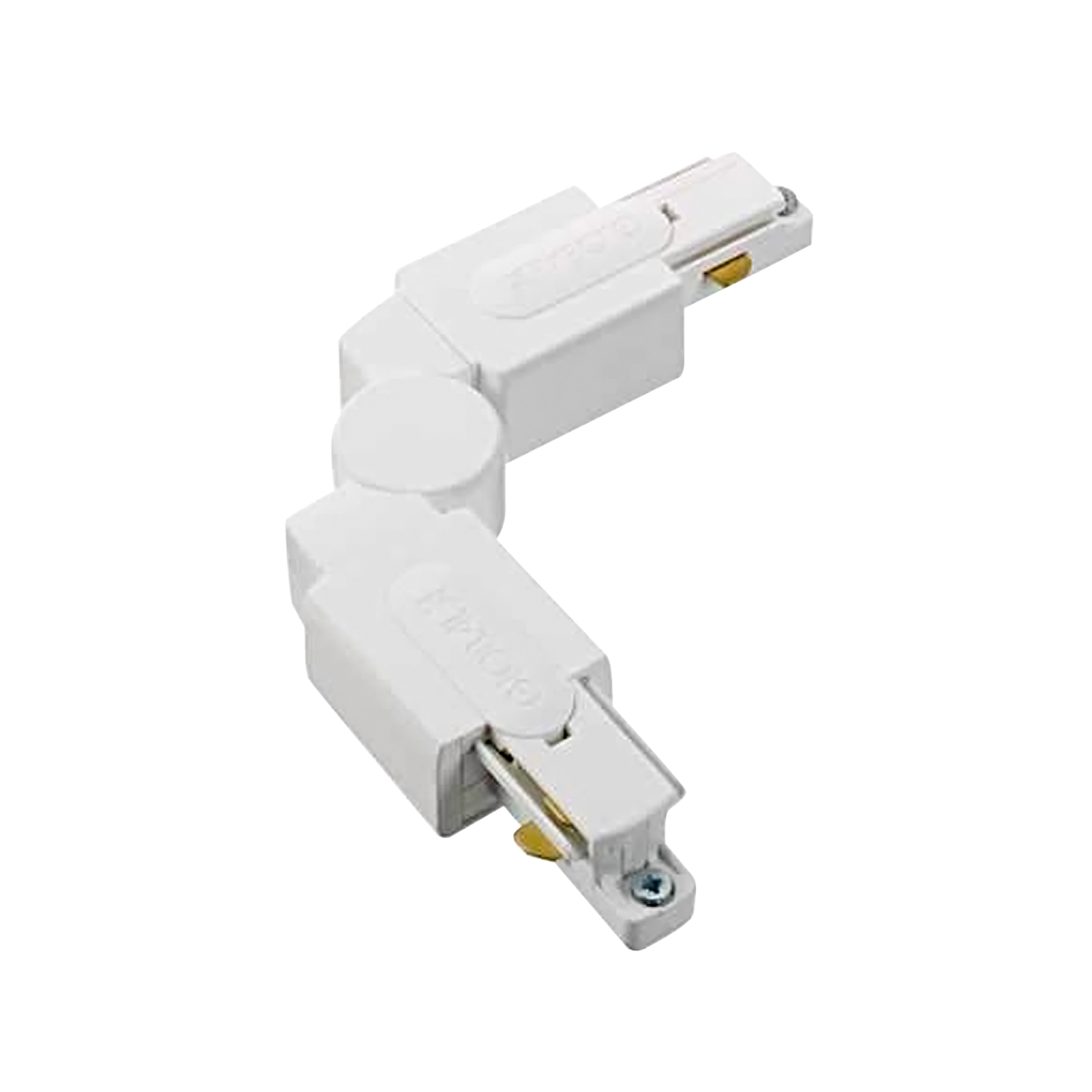 Global Base 1-fase justerbar vinkelskjøt (hvit). Benyttes for å koble to skinner sammen i en vinkel på 0 til 180 grader.