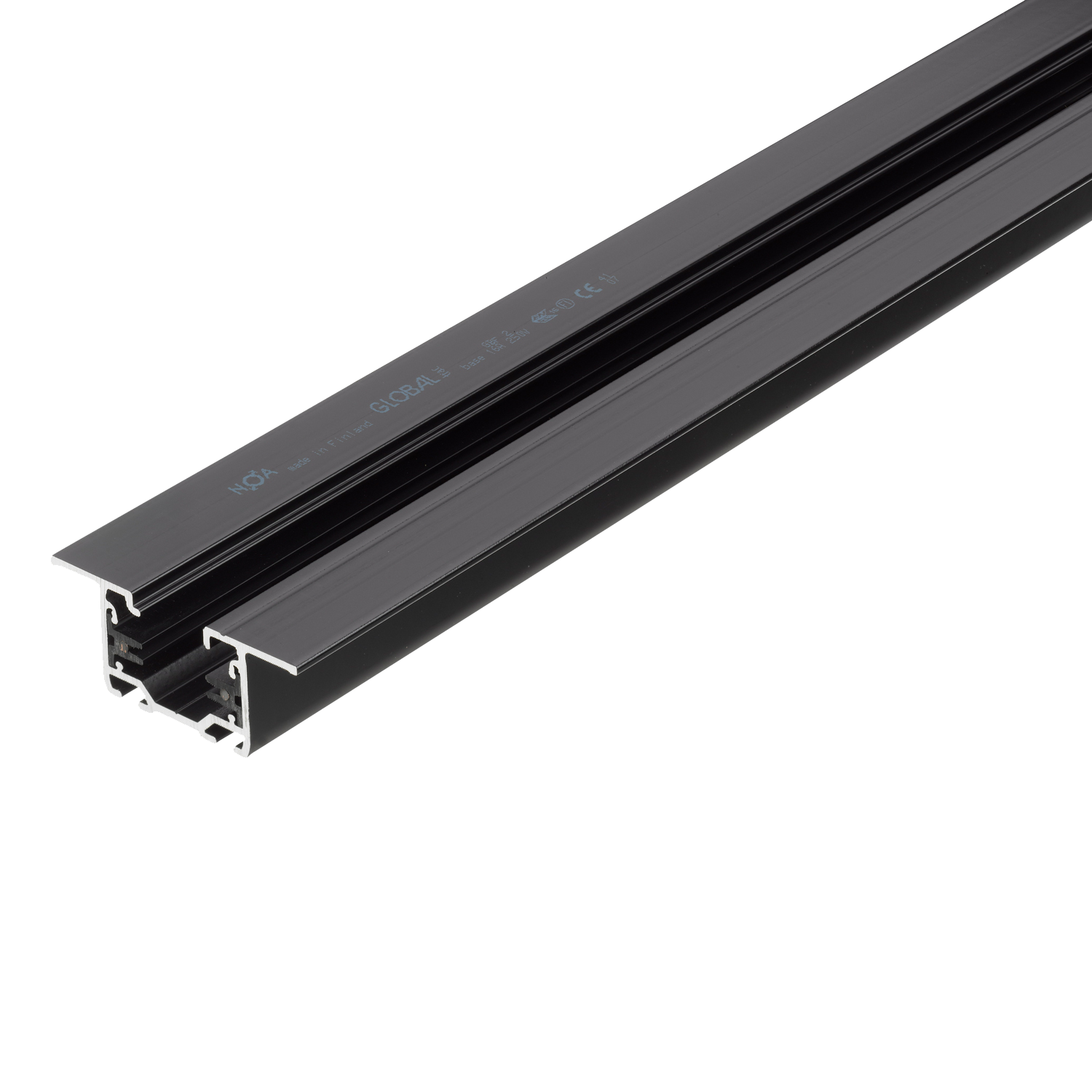 Den innfelte versjonen av Global Base 1-fase spotskinne er spesialdesignet for nedhengte tak og gir en elegant, kompakt løsning for innfelte enkretsskinnesystemer. Skinnene er tilgjengelige i flere lengder og kan kappes til for å tilpasses ditt spesifikke bruk og designbehov.