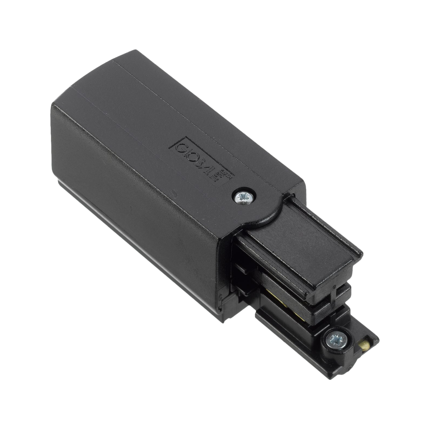 Strømforsyning for Global Pro 3-fase skinnesystem. Brukes til å koble spenning (230V) til enden av skinnen. Tilgjengelig i to varianter (XTS11& XTS12) avhengig av hvilken side av skinnen strømforsyningen skal kobles til. Når du kobler til en rett skinnelengde, er typen strømforsyning ikke avgjørende ettersom skinnen kan snus om nødvendig. Imidlertid anbefaler vi vanligvis å bruke den venstre tilkoblingen (XTS11), da det gir bedre utnyttelse av skinnens bredde. Dette skyldes at spotlighten kun kan monteres fra én side av skinnen. Ved å montere strømforsyning på venstre side får du bedre utnyttelsen av skinnens bredde.