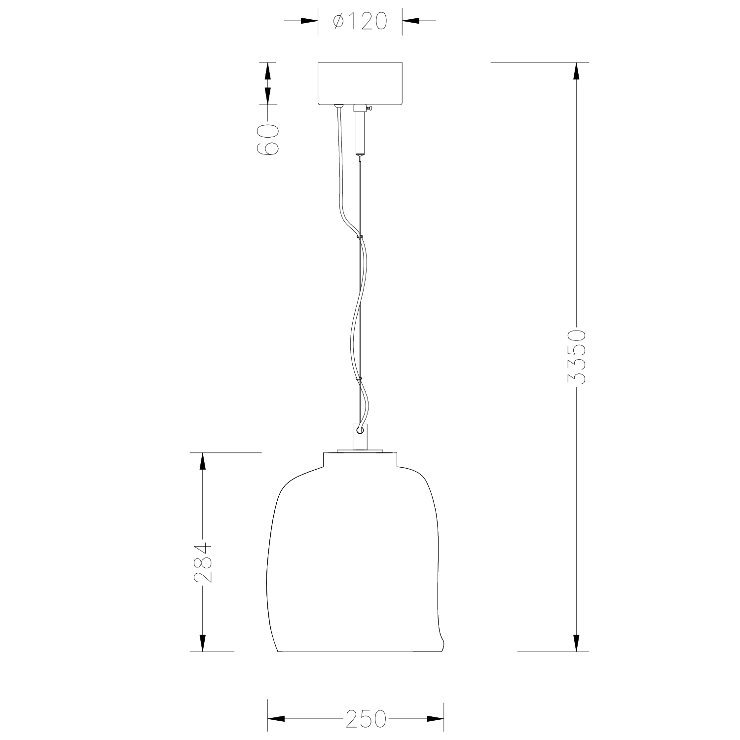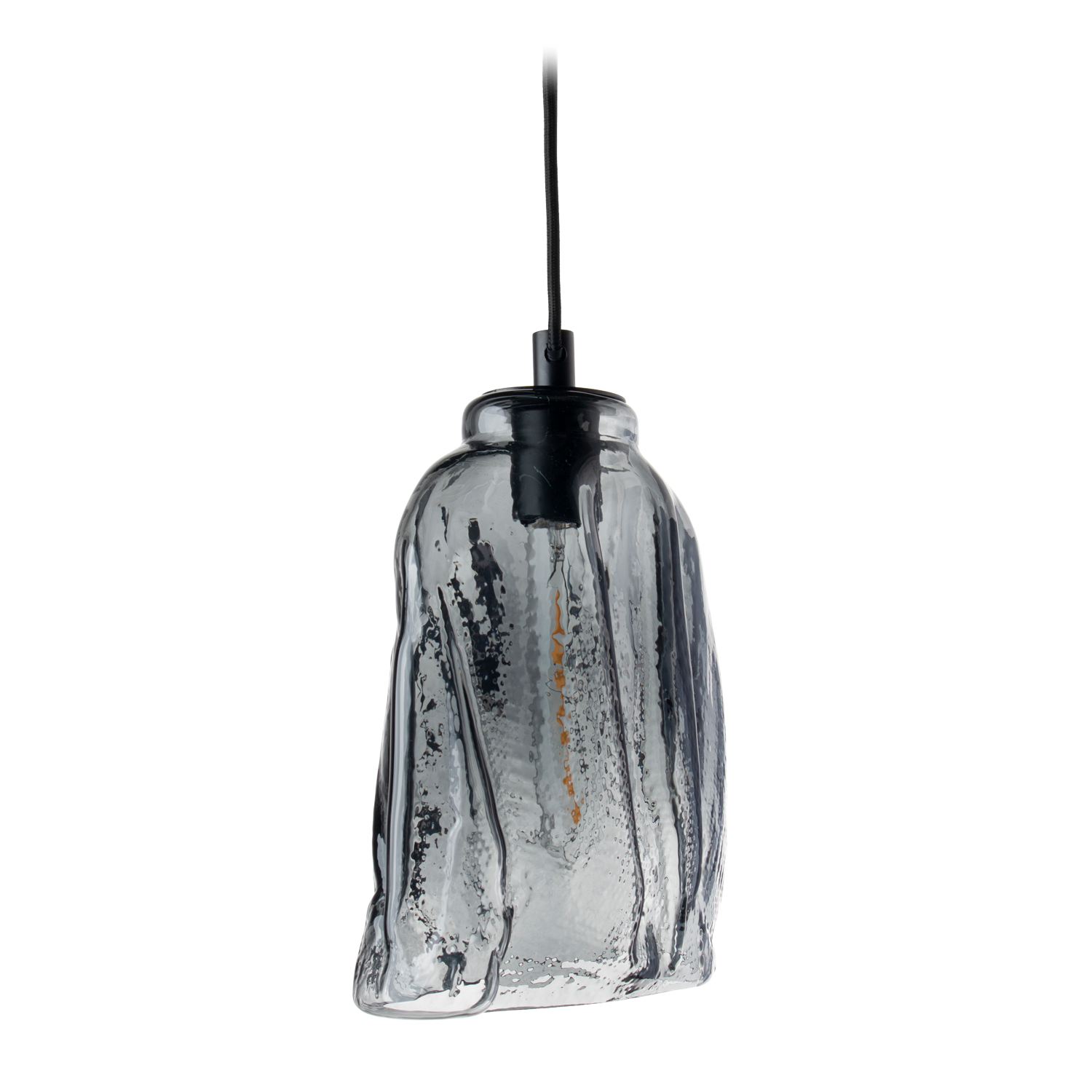 Nedhengt glasspendel i røkt glass, en naturlig form som gir assosiasjoner til smeltet glass. Tilgjengelig i to størrelser.