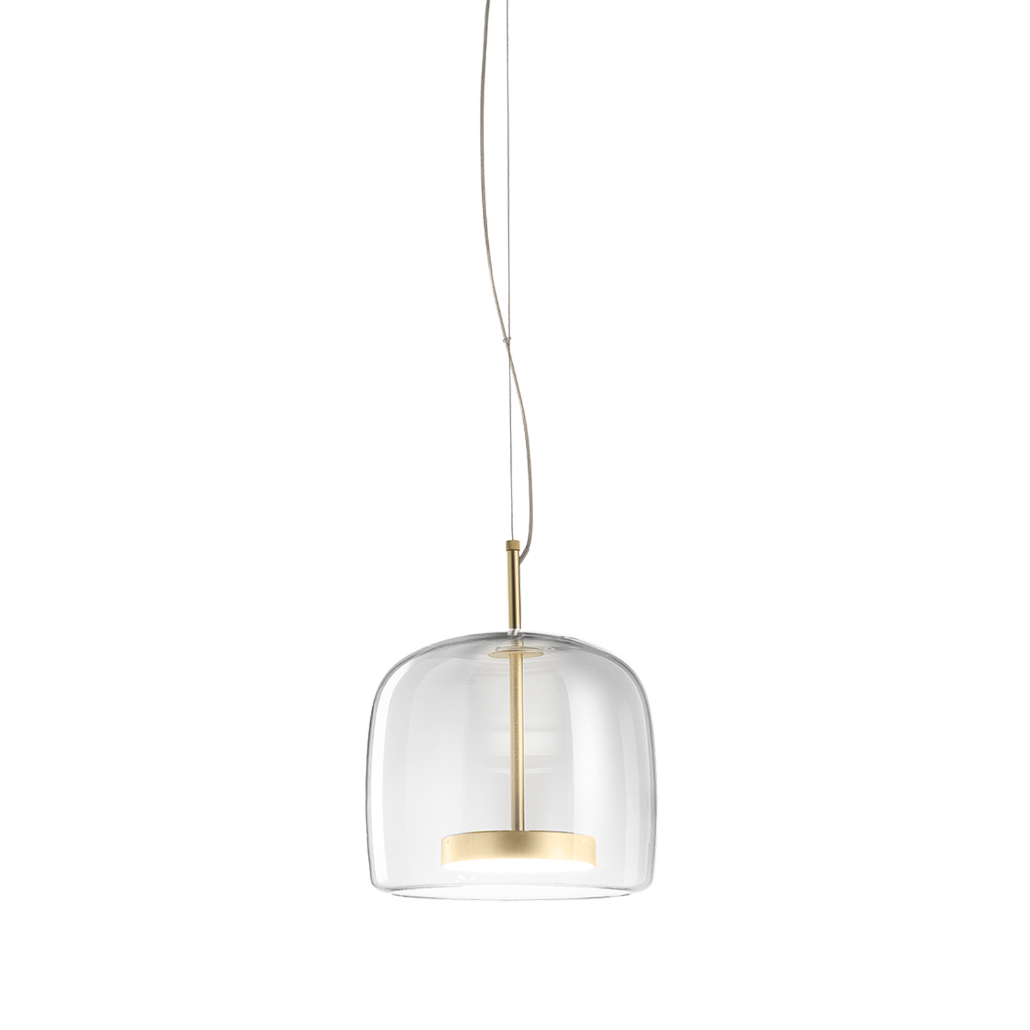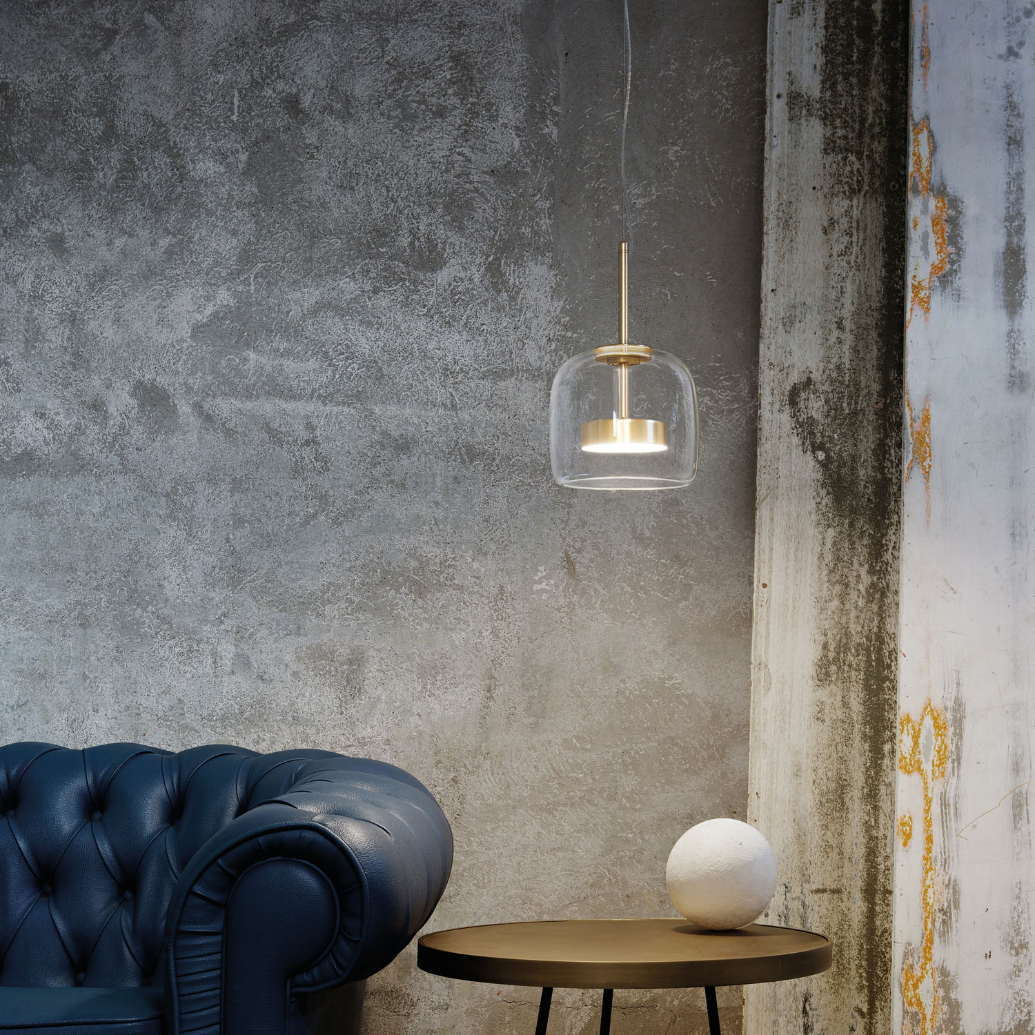 Det elegante og delikate utseendet til det blåste glasset finner en ny dimensjon i Jube taklampe. To glassenheter plassert side om side, så perfekt montert at de ser ut som et unikt stykke. En slynget lampe, med ton-i-ton-farger som gir den en dyrebar, vintage-stemning.
