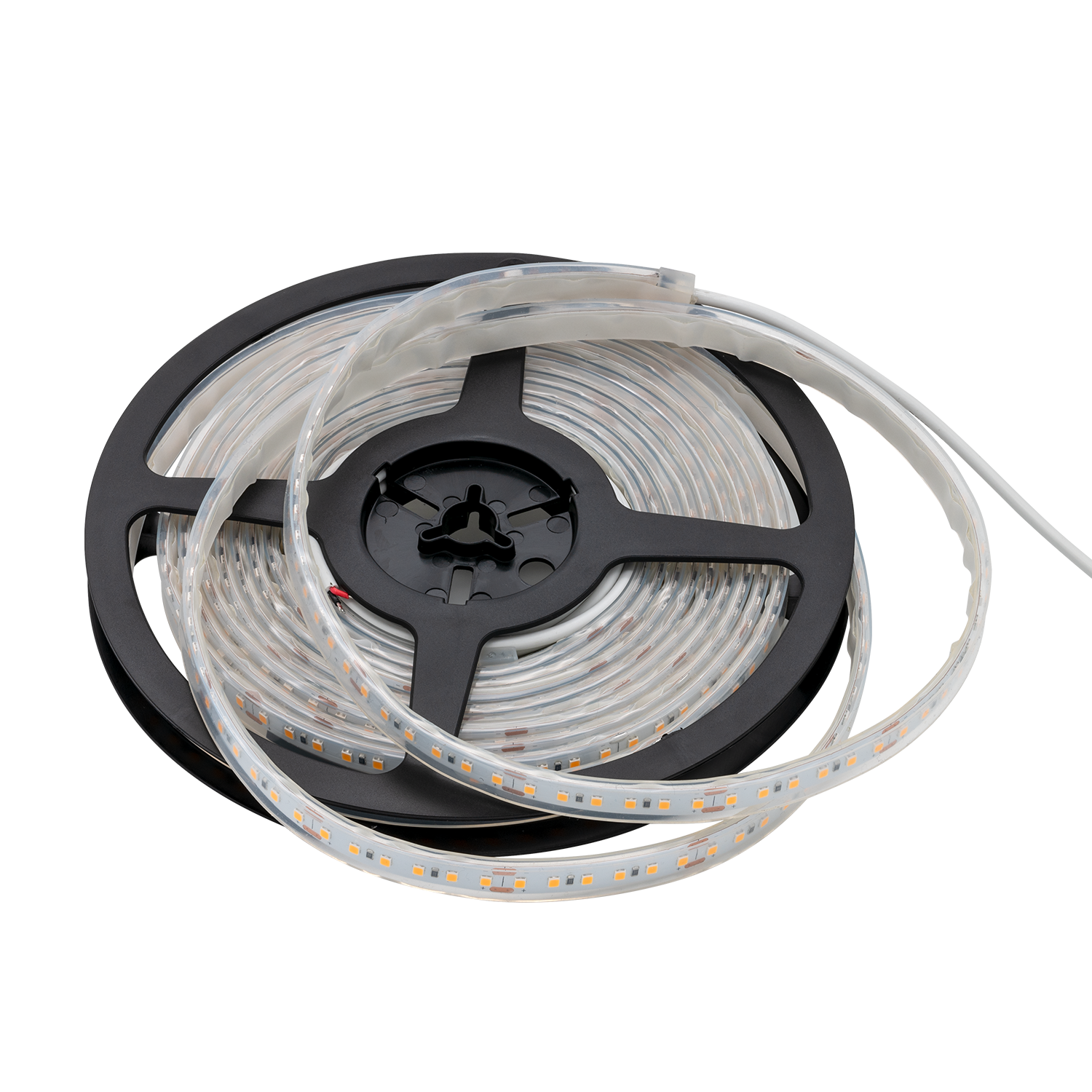 Vår 14,4 watt per meter LED-stripe er den perfekte løsningen for deg som ønsker å montere LED-stripe utendørs. Med en IP65-klassifisering er den godt beskyttet mot vannsprut og støv, noe som gjør den ideell for utendørs bruk eller i fuktige miljøer som garasje og bod. Den varme fargetemperaturen på 3000K gir et behagelig lys som er både funksjonelt og innbydende, samtidig som den høye fargegjengivelsen (CRI 90) sikrer nøyaktige og naturlige farger.