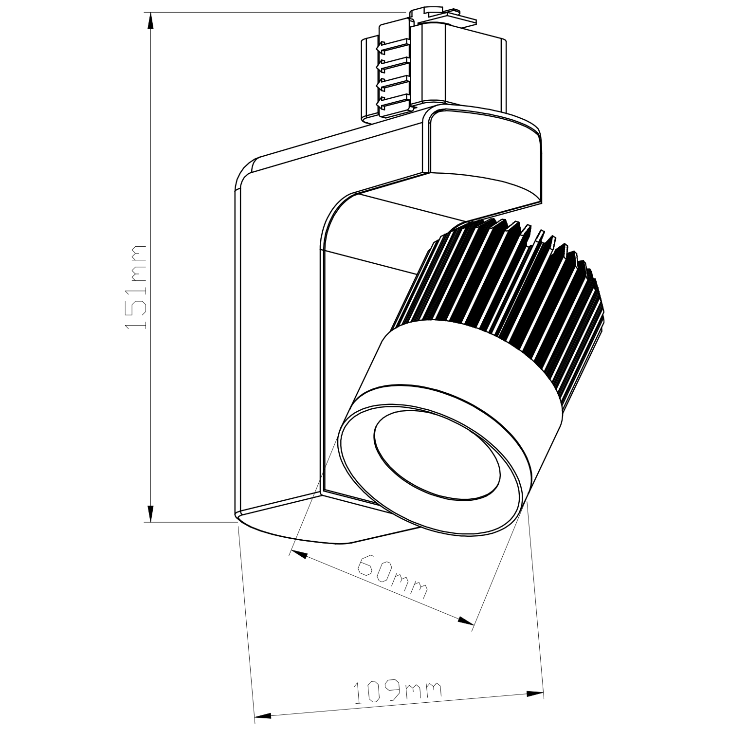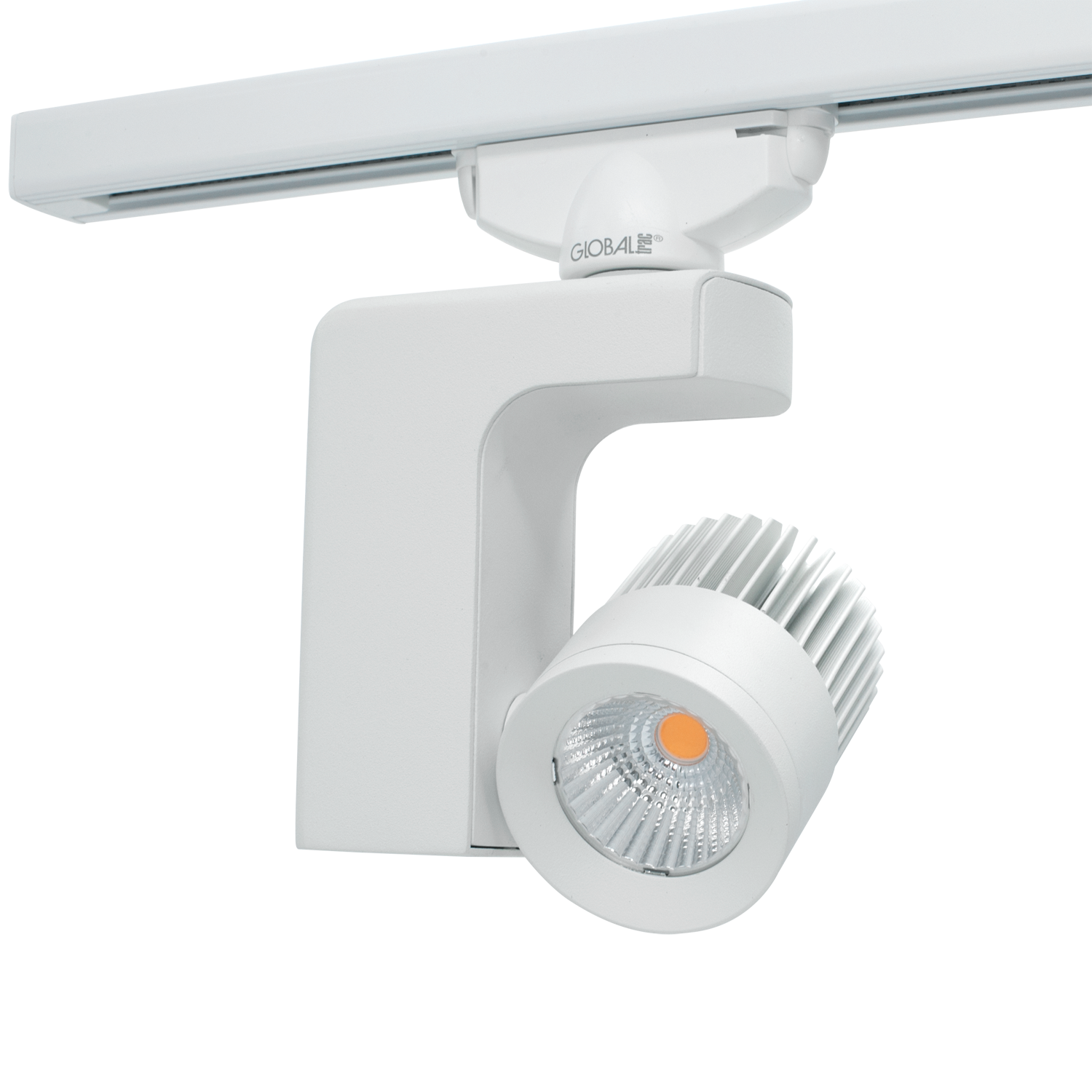 Liten spotlight for bruk i 1-fas skinne med integrert LED lyskilde.