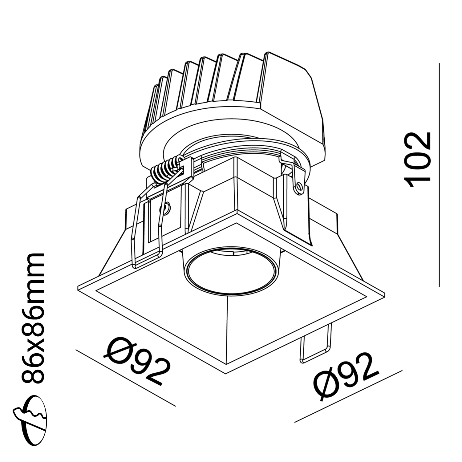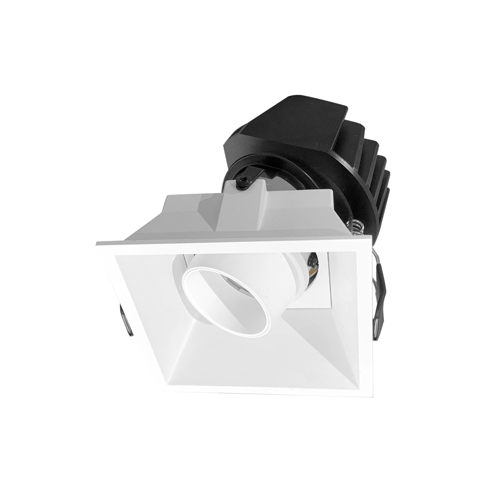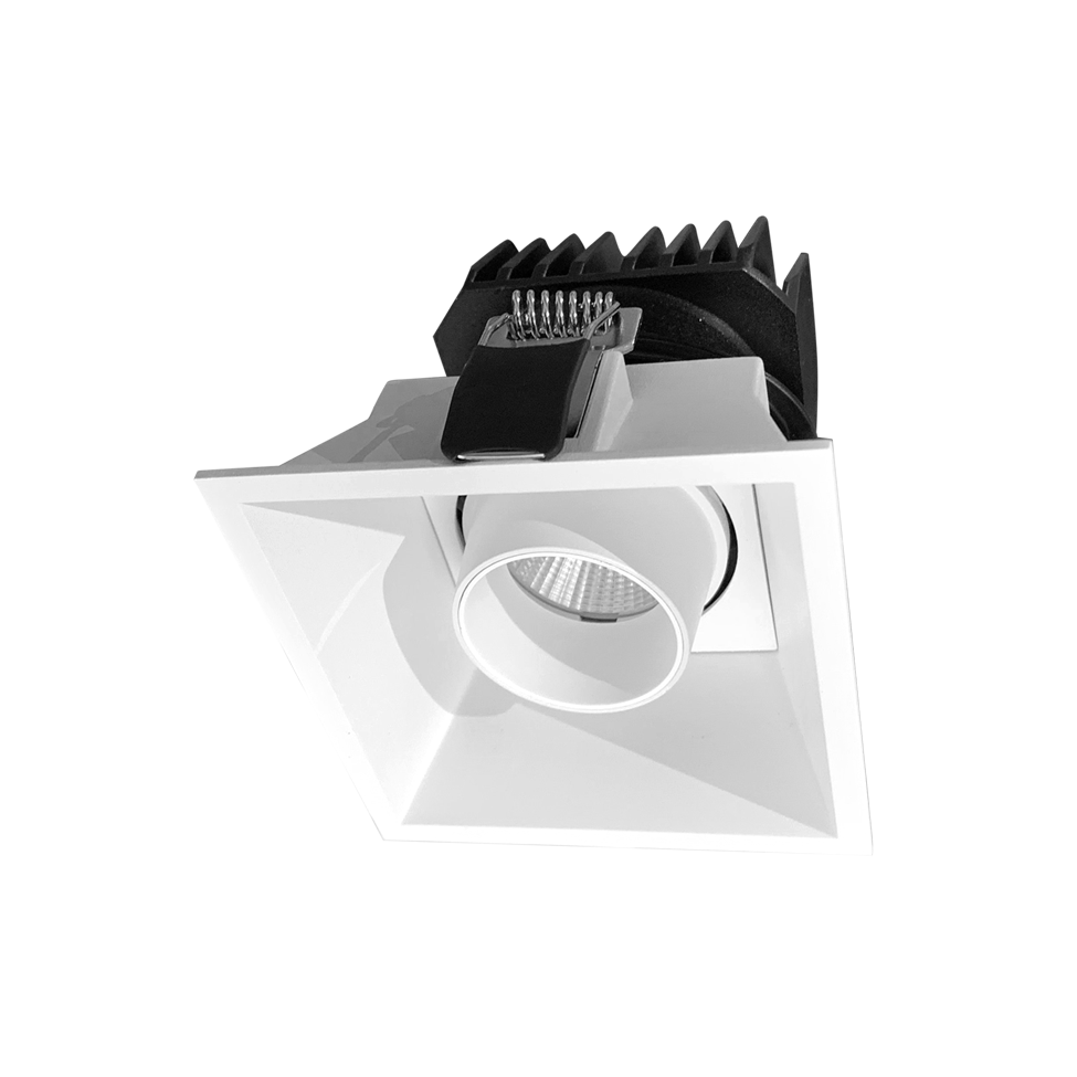 Make er en firkantet downlight som leveres i singel utgave med Dim to Warm funksjon. Fargetemperaturen senkes fra 3000K til 1900K ved dimming. Roterbar 360° og kan tiltes 20°