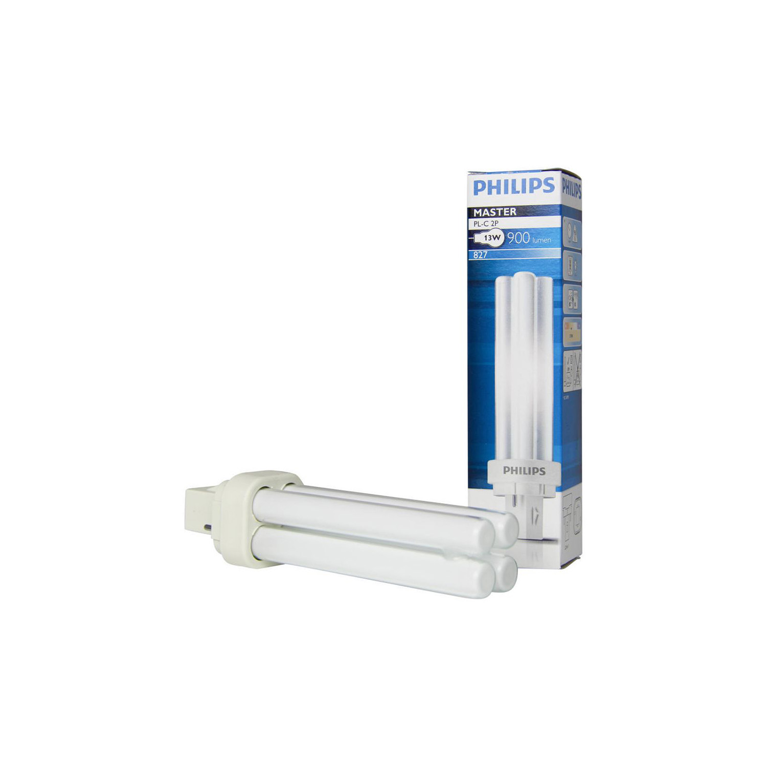 Philips MASTER PL-C 13W er en kompakt lysrørpære med G24d-1 (2-pins) sokkel, utviklet for pålitelig og energieffektiv belysning. Den gir 925 lumen og en ekstra varm hvit fargetemperatur på 2700K, noe som skaper en behagelig atmosfære med god fargegjengivelse (CRI 80-89). Med en levetid på opptil 10 000 timer reduseres behovet for hyppige skift, og den er velegnet til bruk i kontorlandskap, butikker, hoteller og andre fellesarealer. Pæren er ikke dimbar, men leverer stabilt lys av høy Philips-kvalitet.