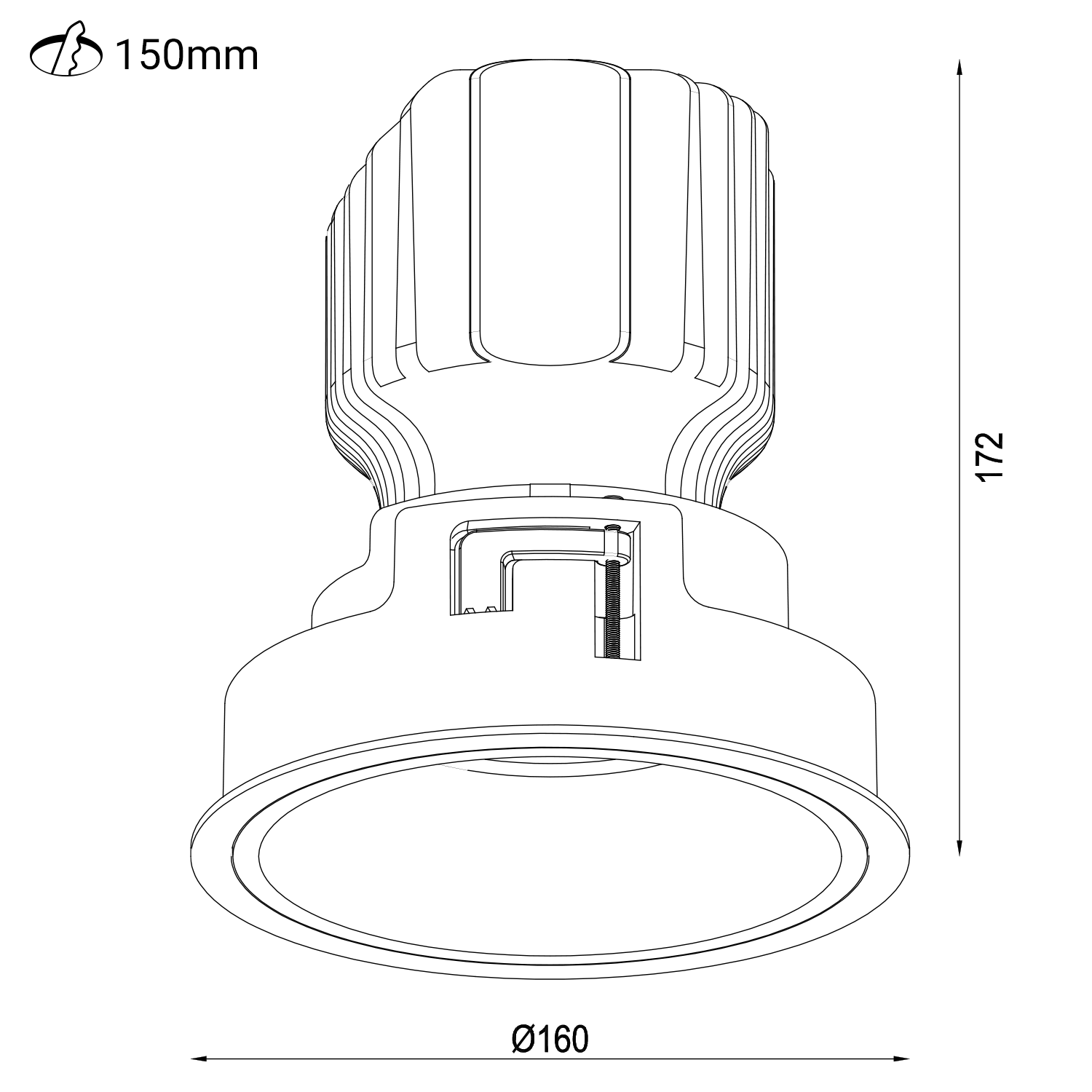 Med en kompakt design på 160mm i diameter og 172mm i høyde, passer Milli Maxi sømløst inn i ethvert rom. IP44-klassifiseringen sikrer at lampen er både støv- og sprutsikker, ideell for ulike bruksområder. Den er designet for innfelt montering og leveres uten driver, som må kjøpes separat. For ekstra fleksibilitet kan du velge mellom frontringer i to ulike farger for å tilpasse stilen til ditt interiør.