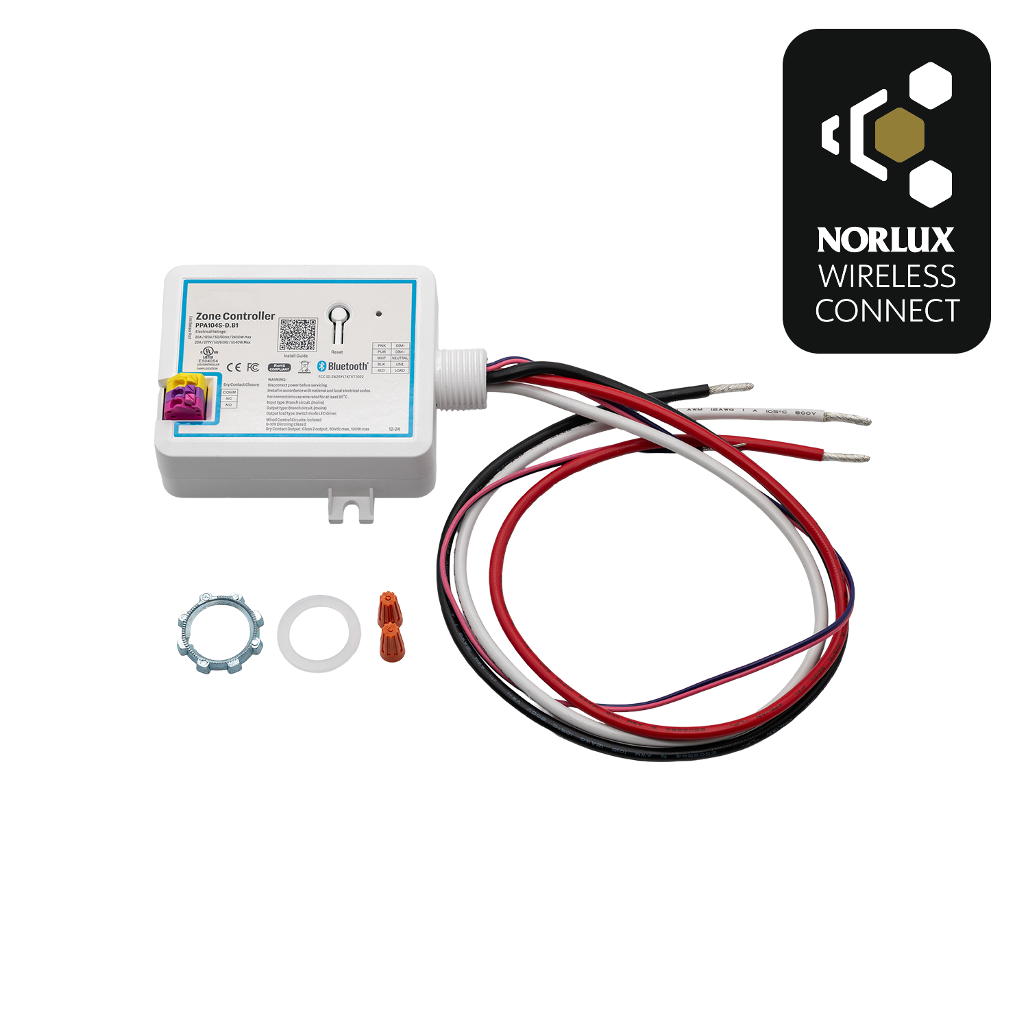 20A relé som gir trådløs kontroll av flere lysarmaturer. Ved å bruke tørrkontaktutgang (normalt åpen/normalt lukket) kan det også sendes signaler til tredjepartssystemer for integrasjon, som for eksempel HVAC.