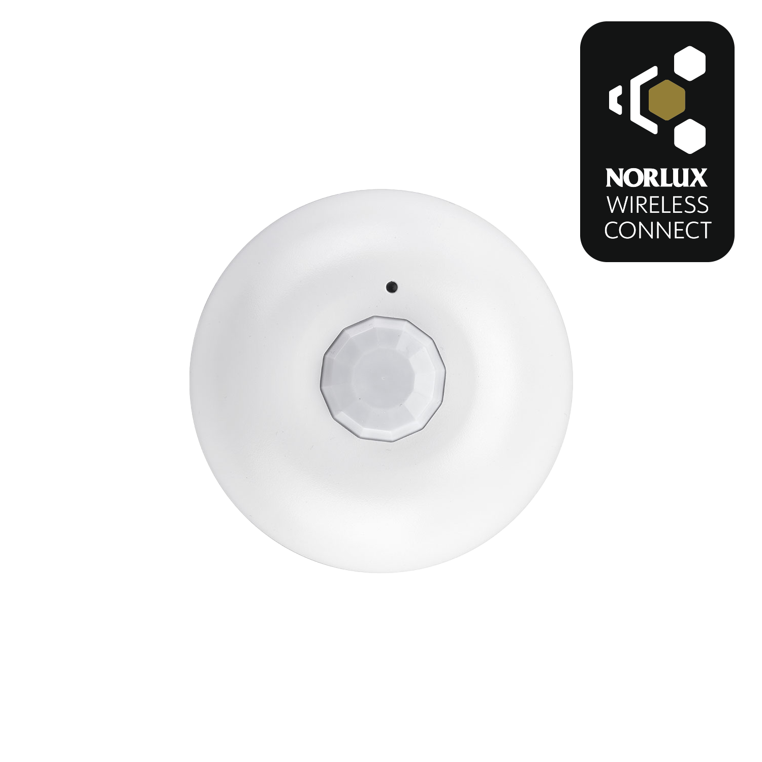 Denne takmonterte bevegelsessensoren er batteridrevet og har innebygget dagslysstyring. Med Norlux Wireless Connect integrert i bevegelsessensoren, har du moderne lysstyringsteknologi uten behov for ekstra kabling. Da åpnes mulighetene for styring, dimming, individuell gruppering og sensorikk helt trådløst med Bluetooth-kommunikasjon.
