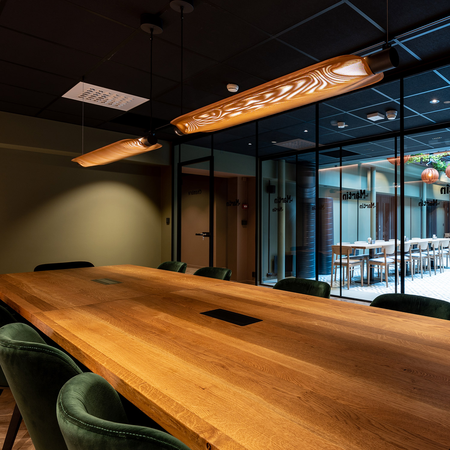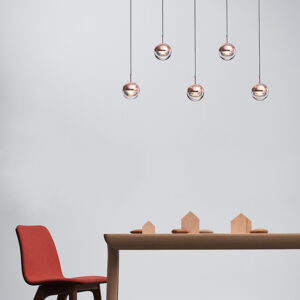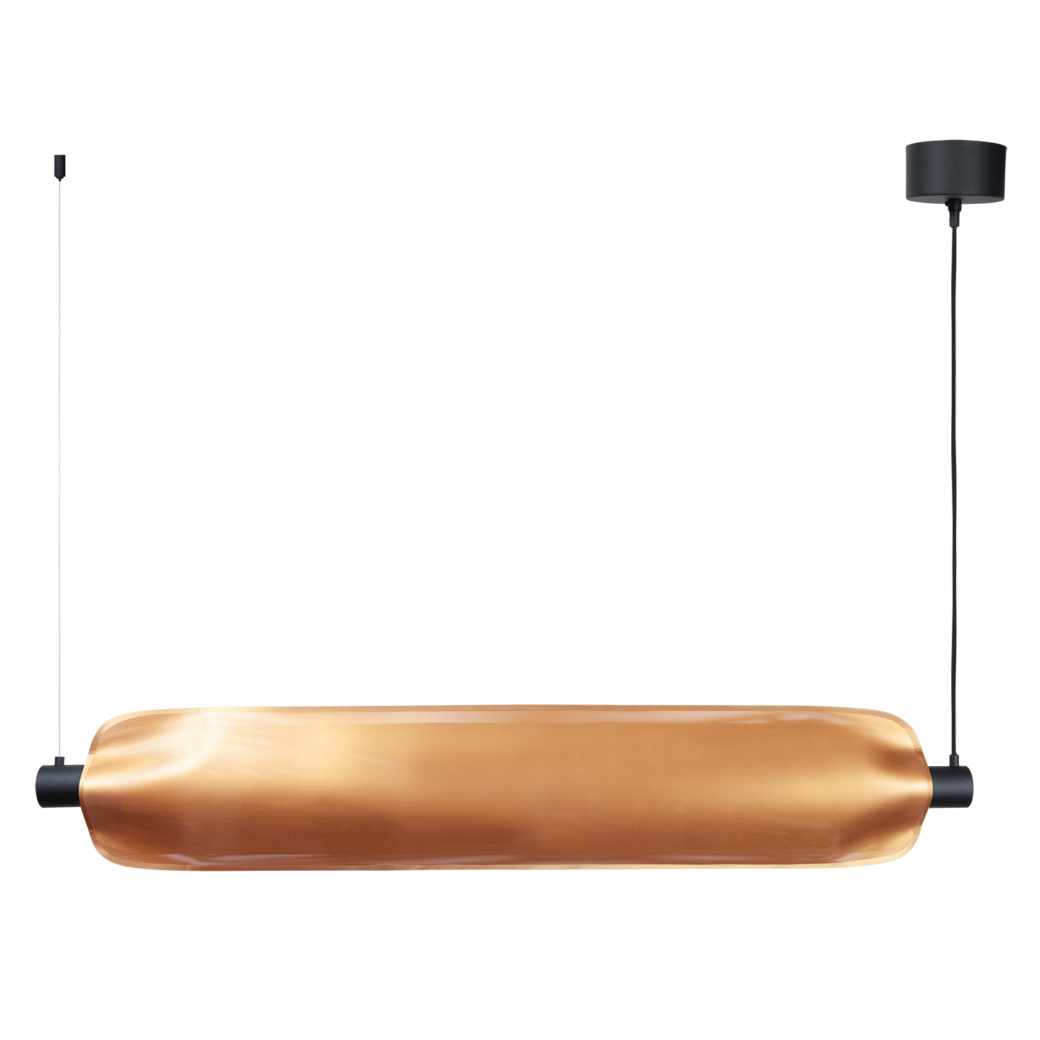 Pendellampen «Ombro» kombinerer estetikk med avansert teknologi, ideell for estetisk orienterte individer. Den har en distinkt bølgende form med en kobberfinish, som tilbyr et moderne visuelt inntrykk. Med mål på 1320 mm i lengde, 60 mm i bredde, og 240 mm i høyde, er «Ombro» designet for å komplementere både arbeids- og spiseområder uten å dominere rommet.
