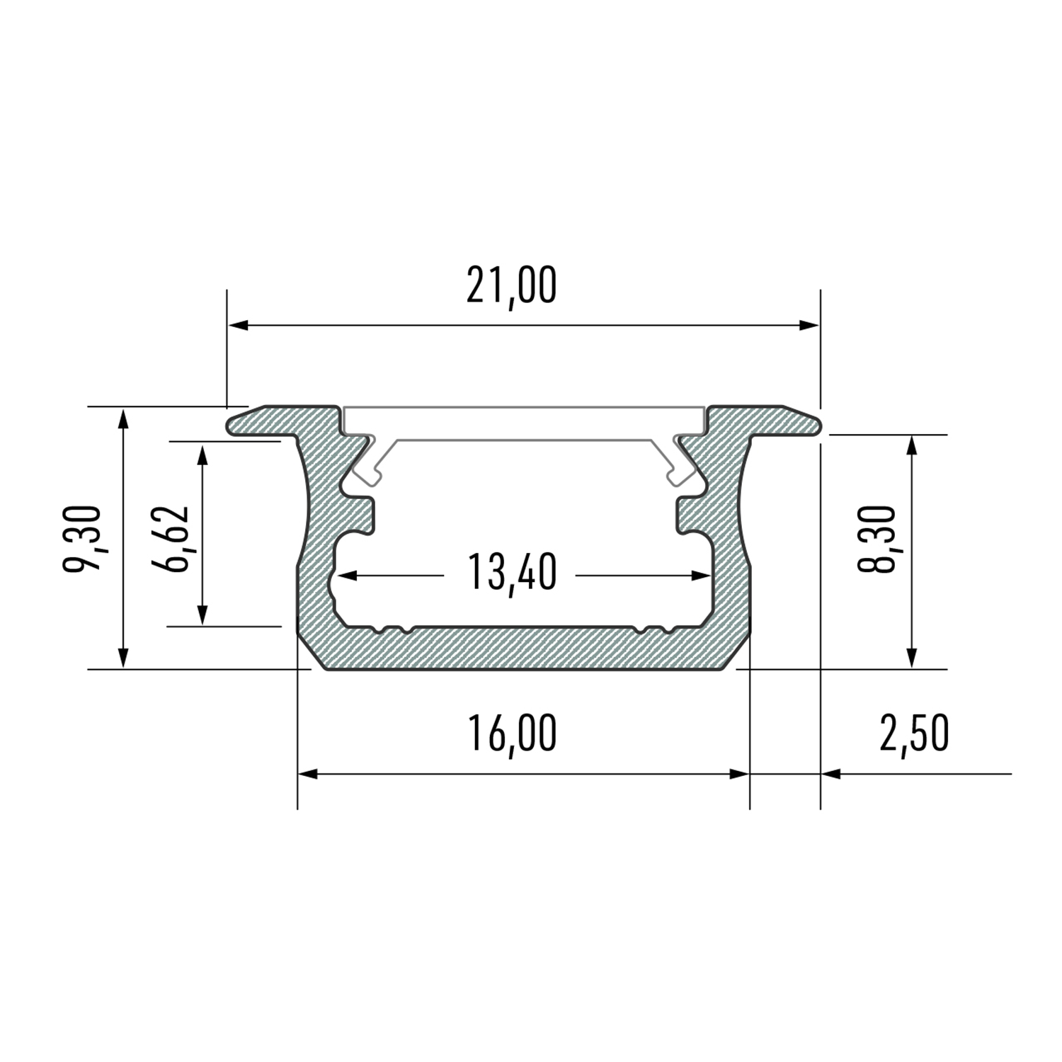 Elegant aluminiumsprofil for innfelt montering. Profilen har et lavt og smalt design som gjør den ideell til diskre installasjoner