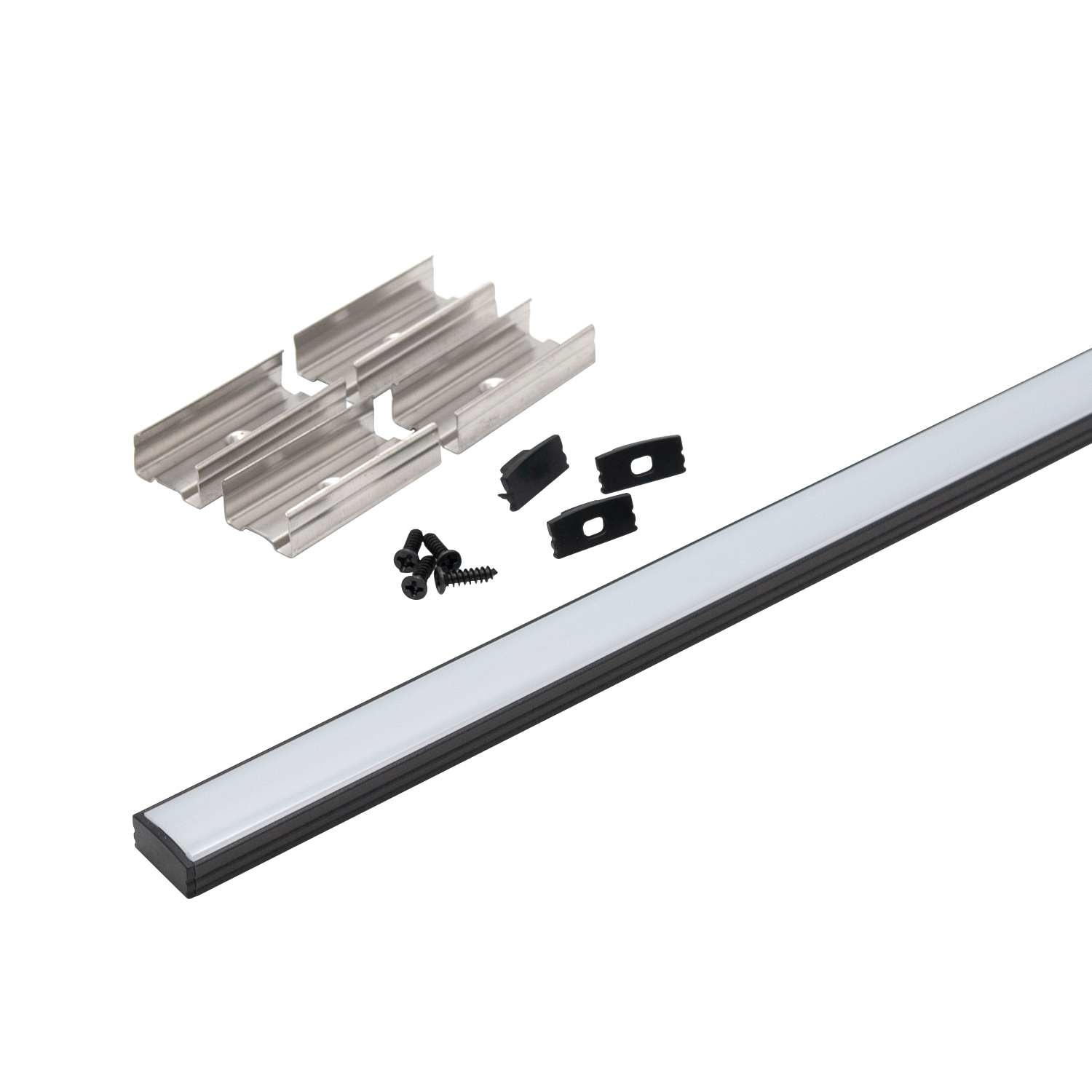 Leveres med opal avdekning, festebraketter, flate skruer og endestykker.