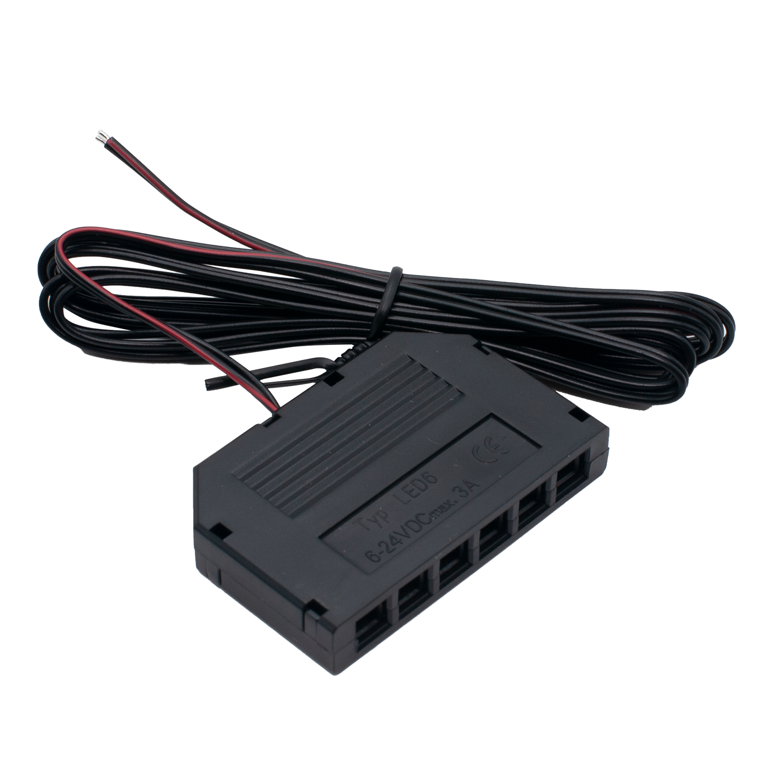 Splitter for Riva, 6-uttak. Max 3A eller 72W (ved 24V). 2m kabel med fri ende (mot driver).