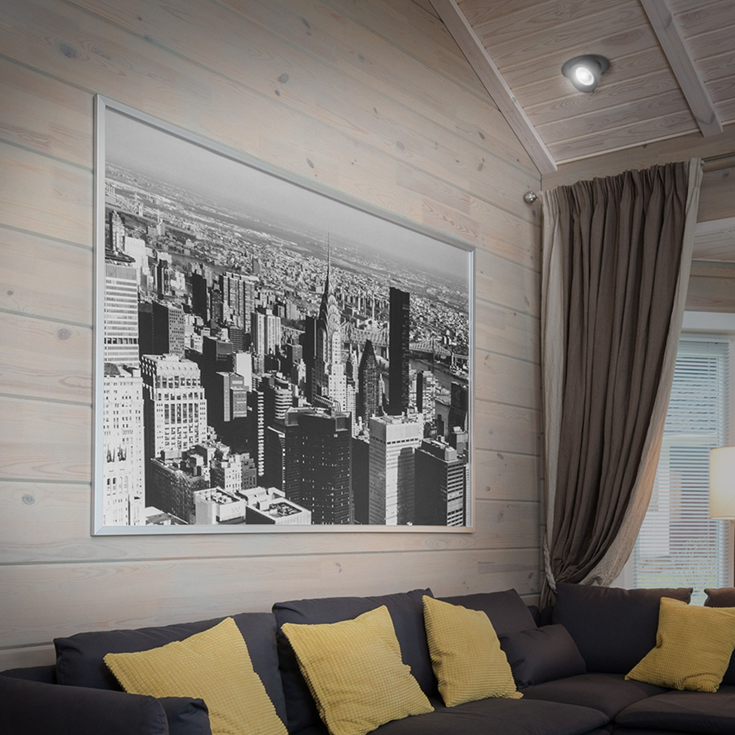 Sargas er en innendørs downlight med 53° vipp og roterbar 350° for å rette lyset der man trenger det. Det gjør den ypperlig for skråtak, men også til flate tak for å lyse opp vegg, motiver og detaljer som skal fremheves.