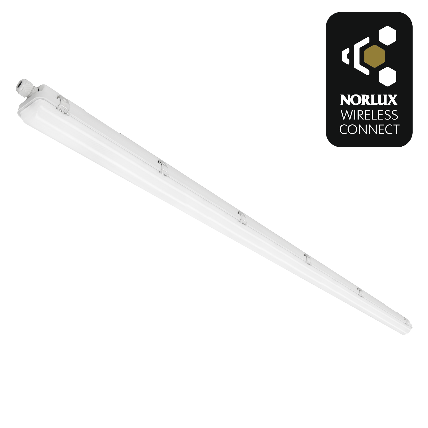 Stream Y NWC er en IP65 forseglet industriell lysarmatur for tak eller nedhengt montering ved bruk av wire (tilvalg). Armaturen har mange bruksområder som garasje, industri og lager. Armaturen har gjennomgangskobling (5×2,5 mm2) , dette sikrer effektiv installasjon uten verktøy. Med Norlux Wireless Connect integrert i armaturen, har du moderne lysstyringsteknologi uten behov for ekstra kabling. Da åpnes mulighetene for styring, dimming, individuell gruppering og sensorikk helt trådløst med Bluetooth-kommunikasjon, med Norlux Wireless Connect system for kontroll.