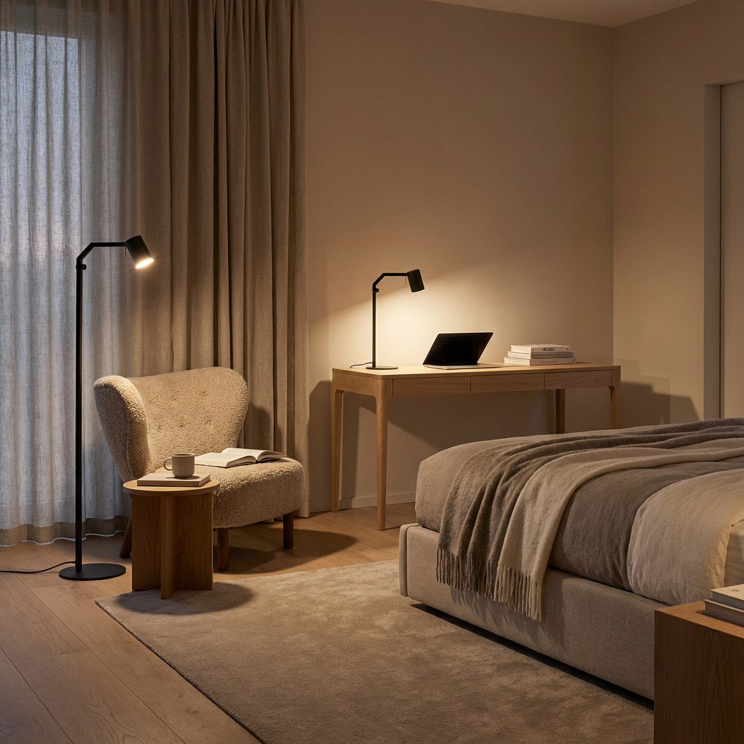 Tania Floor GU10 er en stilren og fleksibel gulvlampe designet for moderne interiører i bolig, hytte, innendørs, restaurant- og hospitality-miljøer. Lampen har et slankt uttrykk som gjør den velegnet både som stemningsbelysning og funksjonelt leselys.