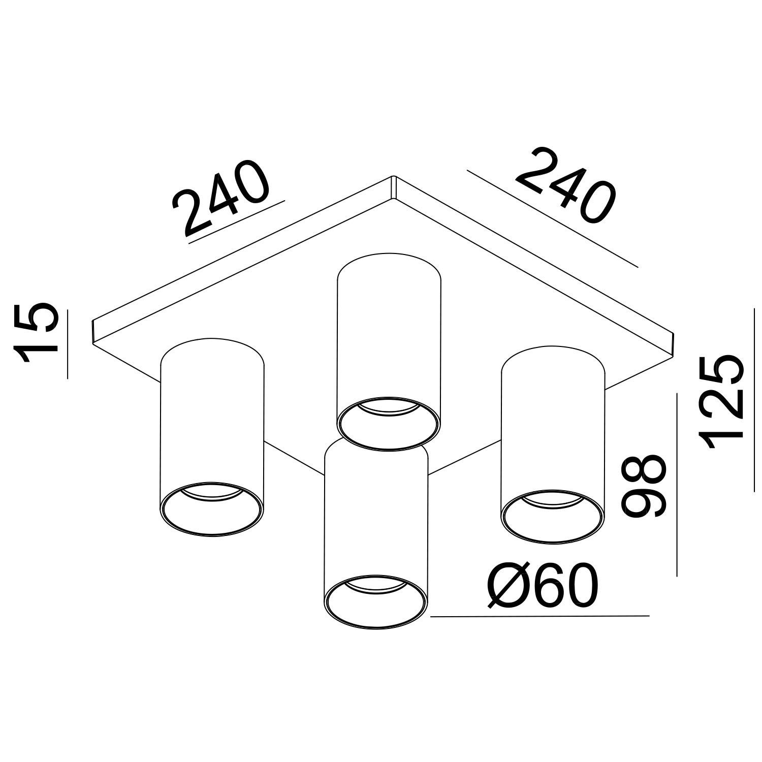 Tania Mini S4 er en liten firedobbel spotlight moderne og tidsriktig design for utenpåliggende montering. GU10 lyskilde medfølger ikke. Gull frontring kan kjøpes separat.