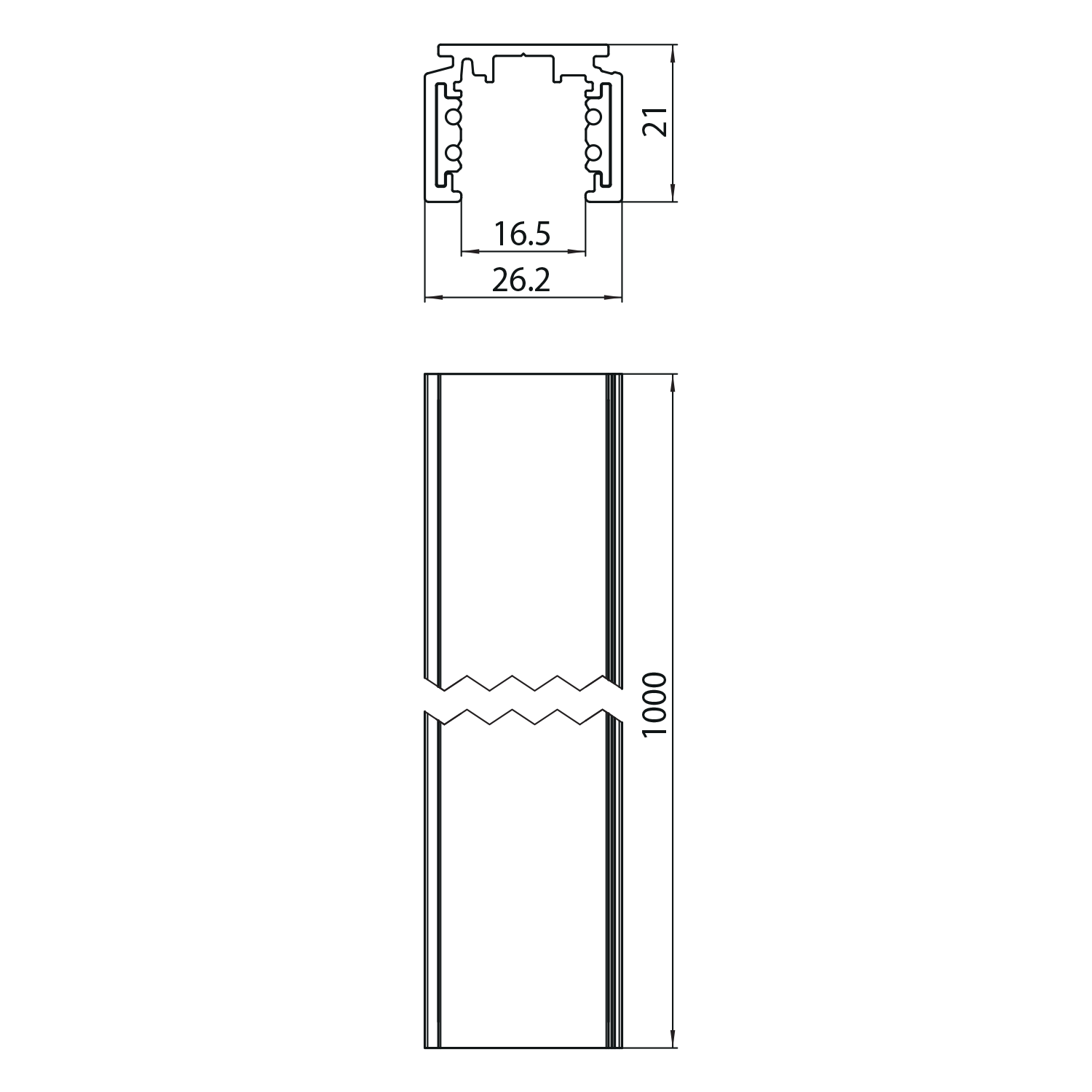 Sort 2m 48V EVO ST1 DALI lavvolts skinne for utenpåliggende eller nedhengt montering
