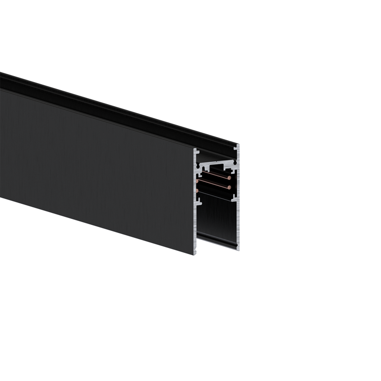Sort 1m 48V EVO ST2 DALI lavvolts skinne for nedhengt montering med mulighet for å montere ledstrip på oversien av ledstripen.