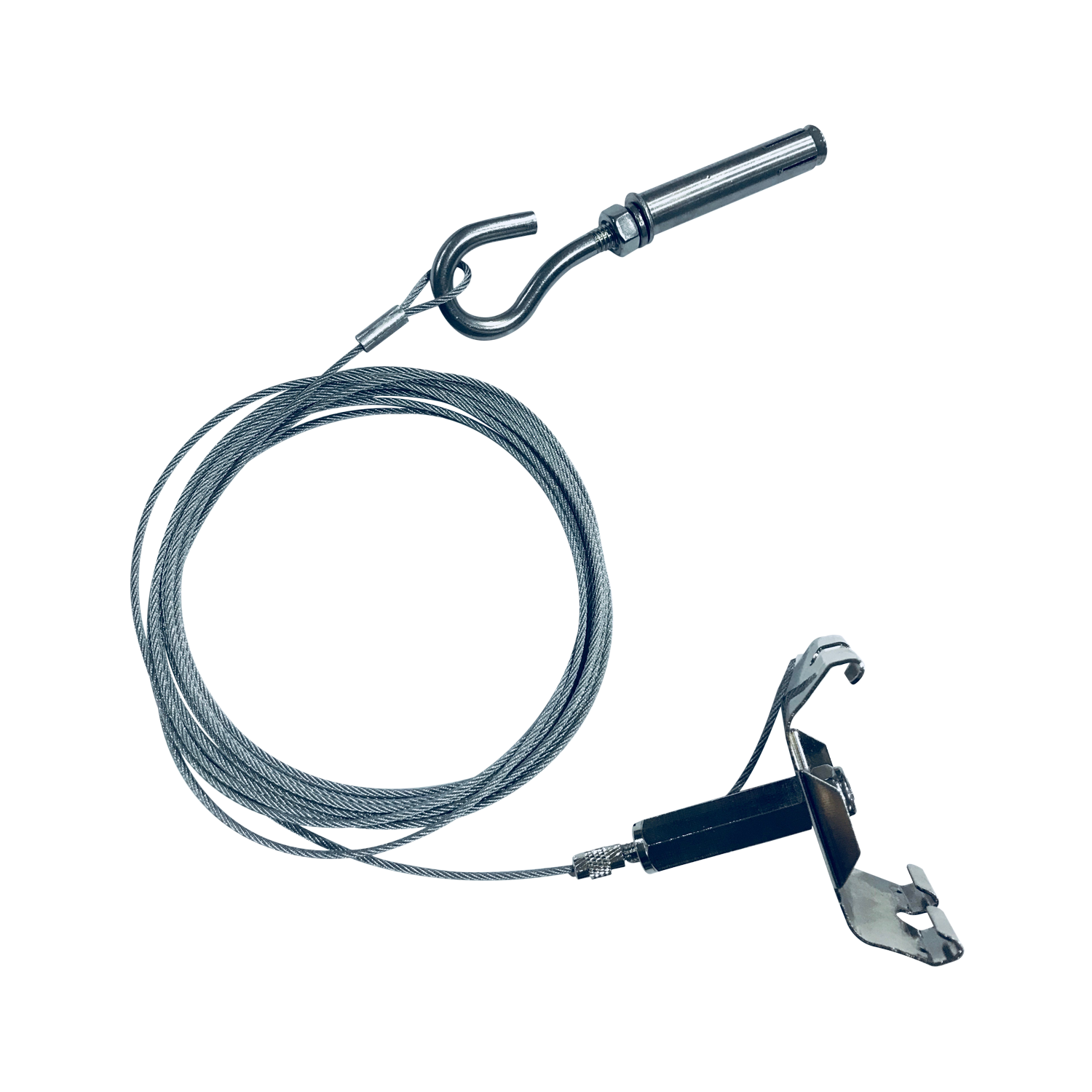 Wirekit 3m for Trunk. Første festepunkt starter på 100-800 mm. Anbefalt avstand mellom festene er maksimalt 2000 mm. Ved 2m avstand blir antall festepunkt pr strekk total lengde på strekket i meter delt på 2m + 1 stk. Diameter på hull i betongtak: ø10mm, men bør kontrolleres før man starter.