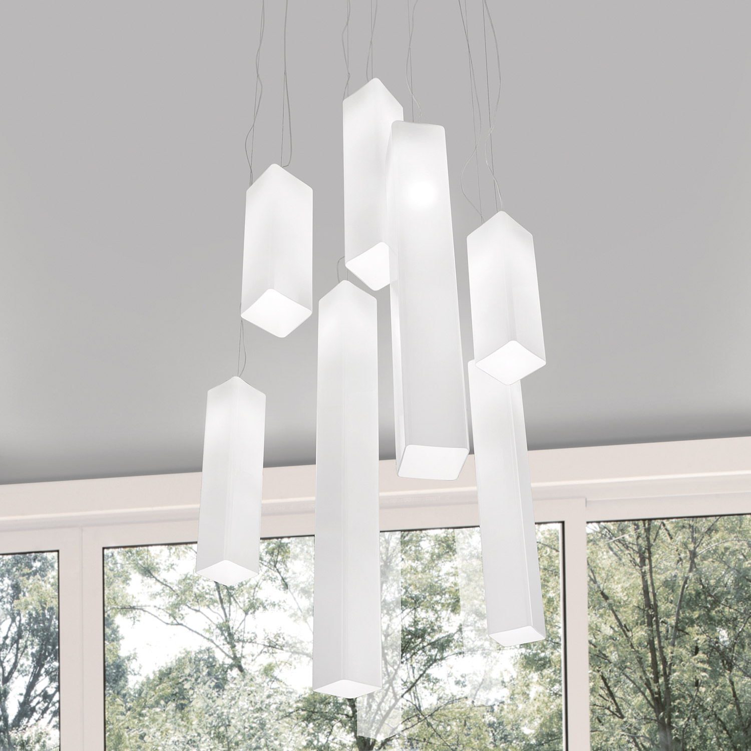 Tubes er laget av munnblåst glass, og den kan brukes som frittstående pendel eller i flere montert i gruppe.