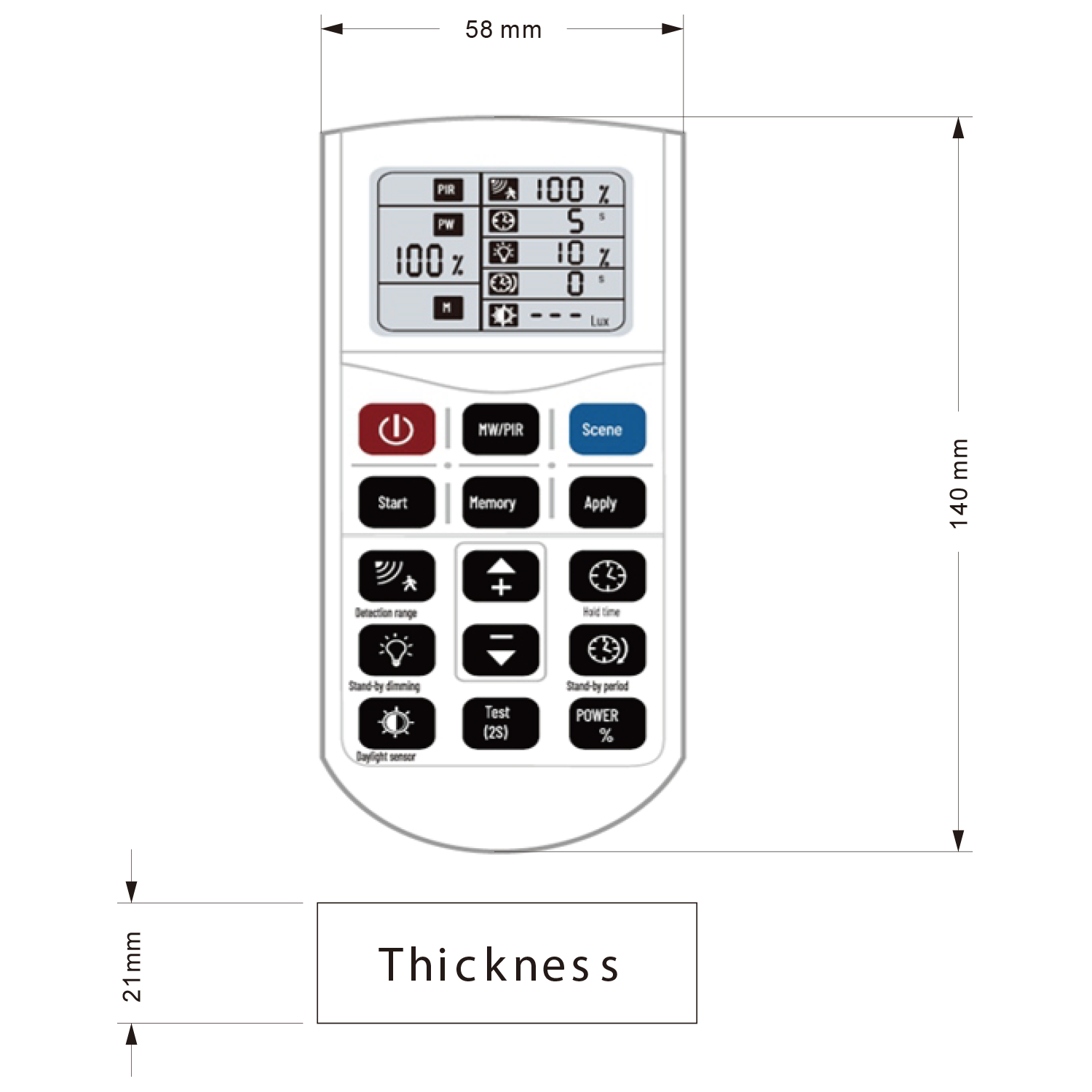 Fjernkontroll soms tyre både PIR og Microwave sensor.