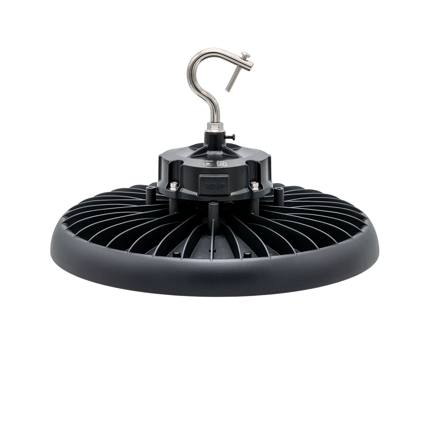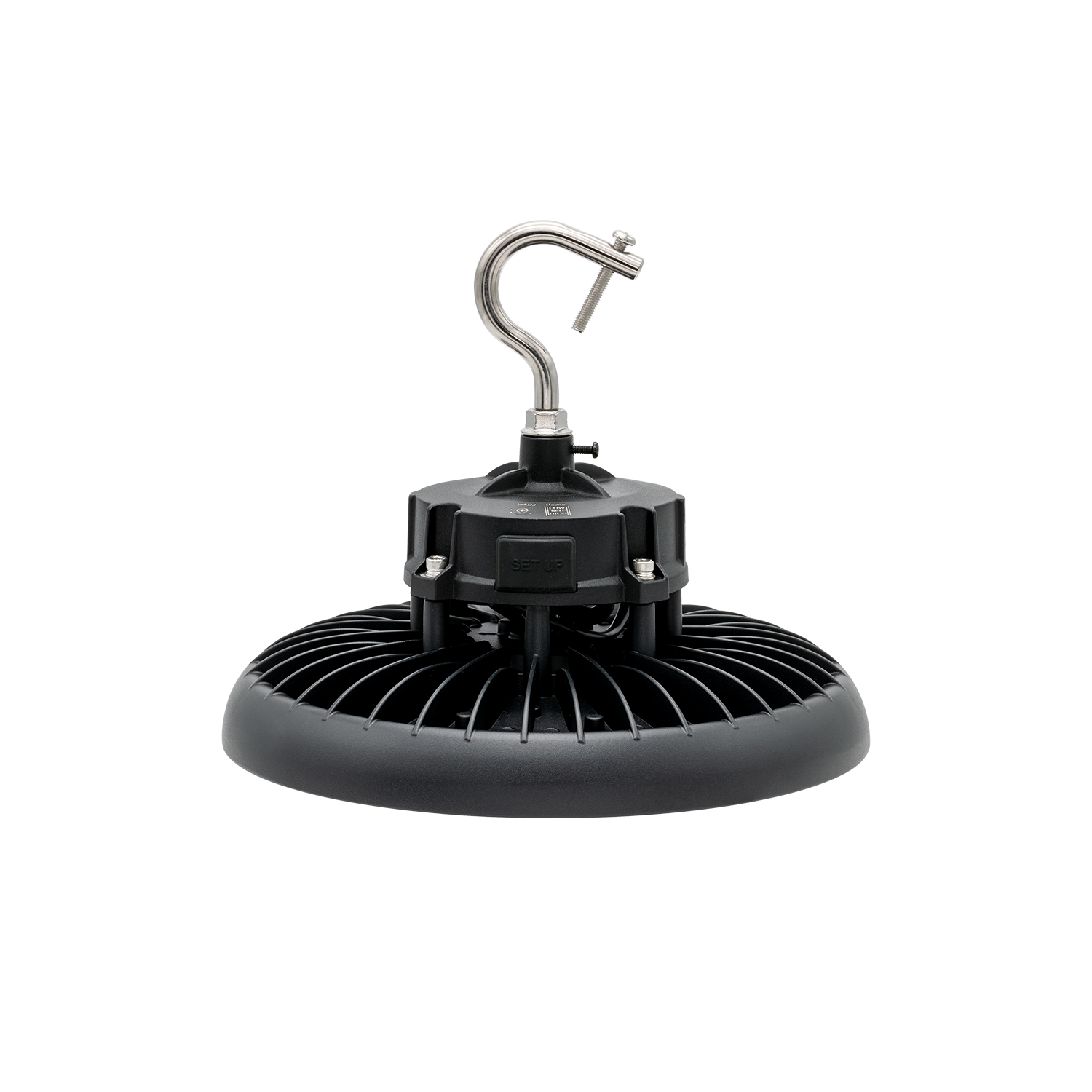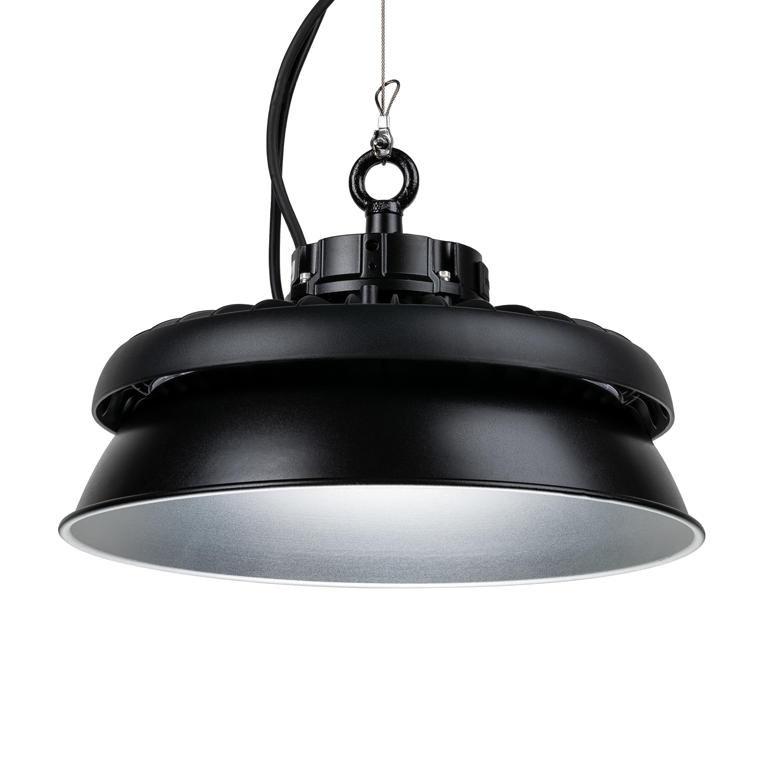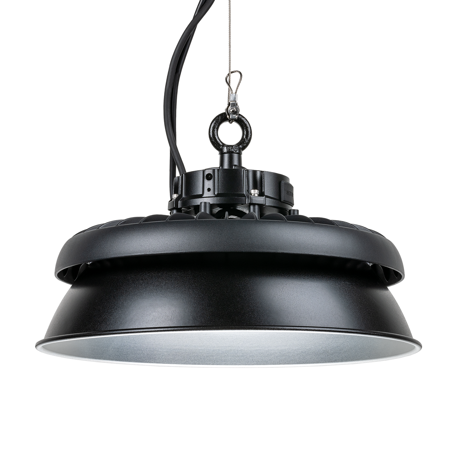UFO U High Bay er en allsidig og robust armatur ideell for næringsbygg og industrielle omgivelser. Med IP65 og IK08 klassifisering kan den benyttes i de fleste forhold. Leveres med 1-10V dimming. PIR eller Mikrobølge sensor kan enkelt ettermonteres.