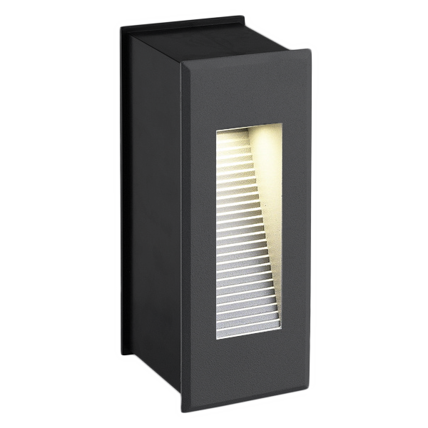 Wall vegglampe er en liten og kompakt utelampe som kombinerer moderne og diskret design, perfekt for ethvert utendørsområde. Med sin elegante antrasittfarge og robuste konstruksjon i aluminium, garanterer den både stil og lang holdbarhet.
