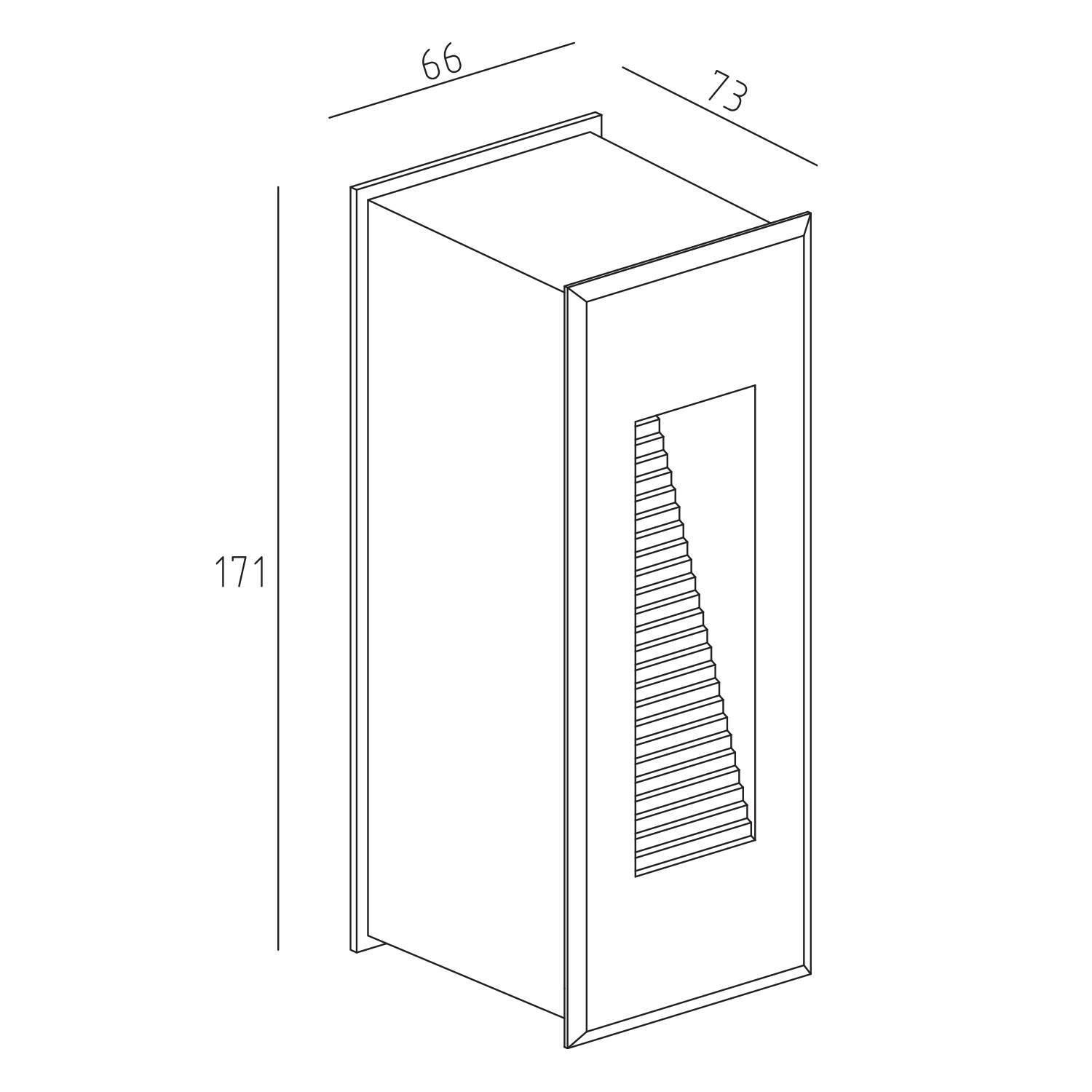 Lampen har dimensjonene – 73 mm i lengde, 66 mm i bredde og 171 mm i høyde.