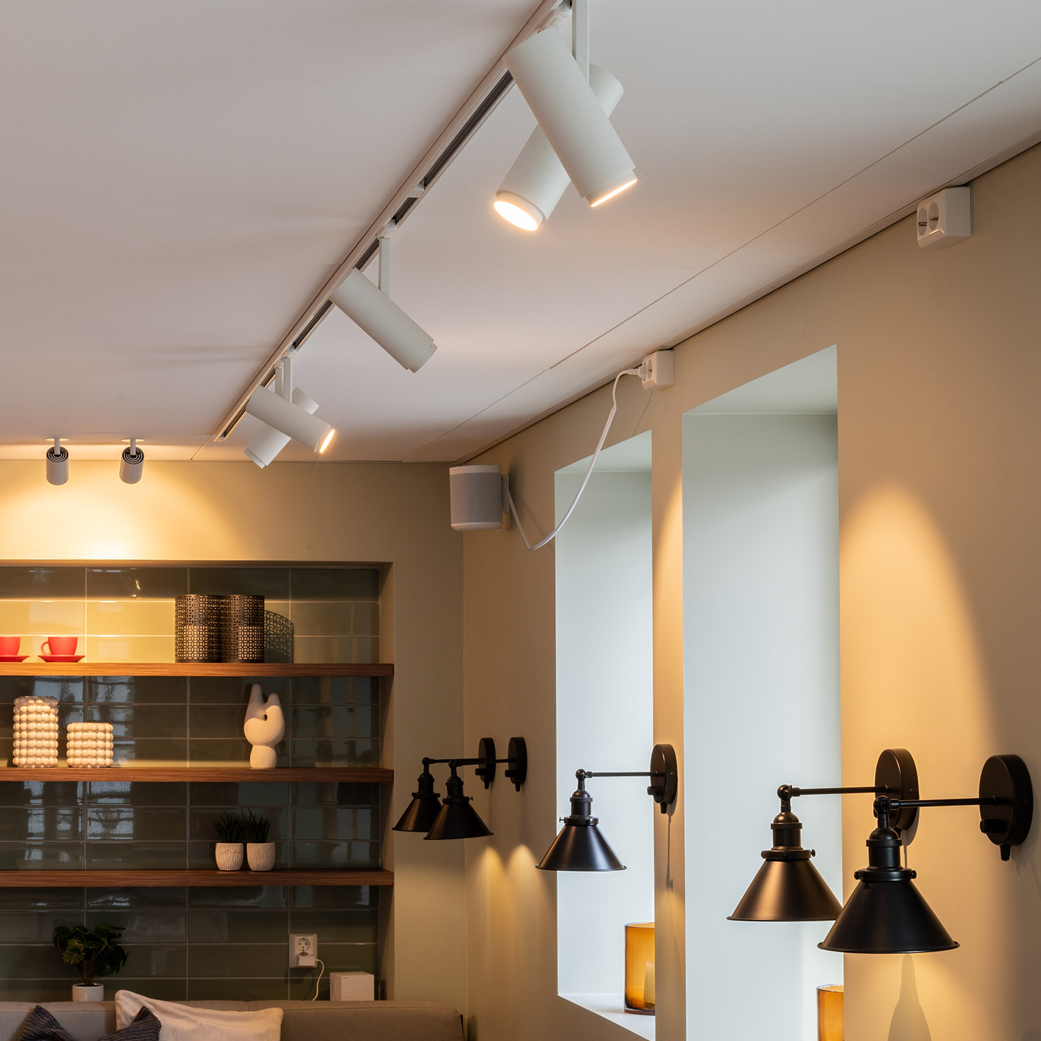 Zoom Mini er en relativt liten spotlight for bruk i skinnesystemer. Det unike zoom-patentet gjør det mulig å variere spredningsvinkelen på lyskjeglen fra 5 til 60 grader. Variasjonsmuligheten gjør denne til en svært anvendelig spotlight. Utformingen er i robust støpt aluminium, og leveres i både svart og hvit versjon med 2700K eller 3000K fargetemperatur. Velg mellom on/off, fase kutt- og DALI dimming.